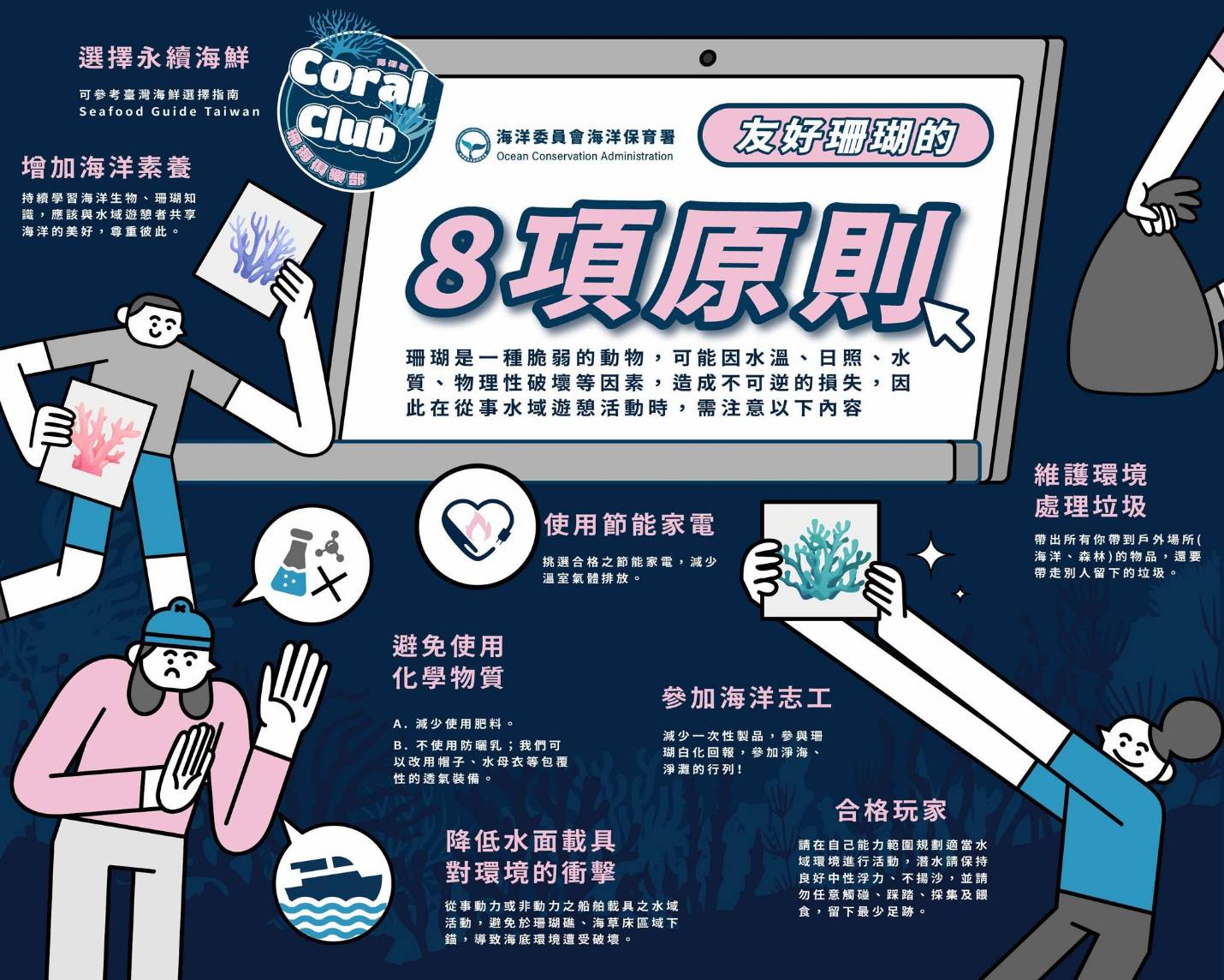 ↑圖說:友好珊瑚8原則(圖片來源:海洋保育署提供)