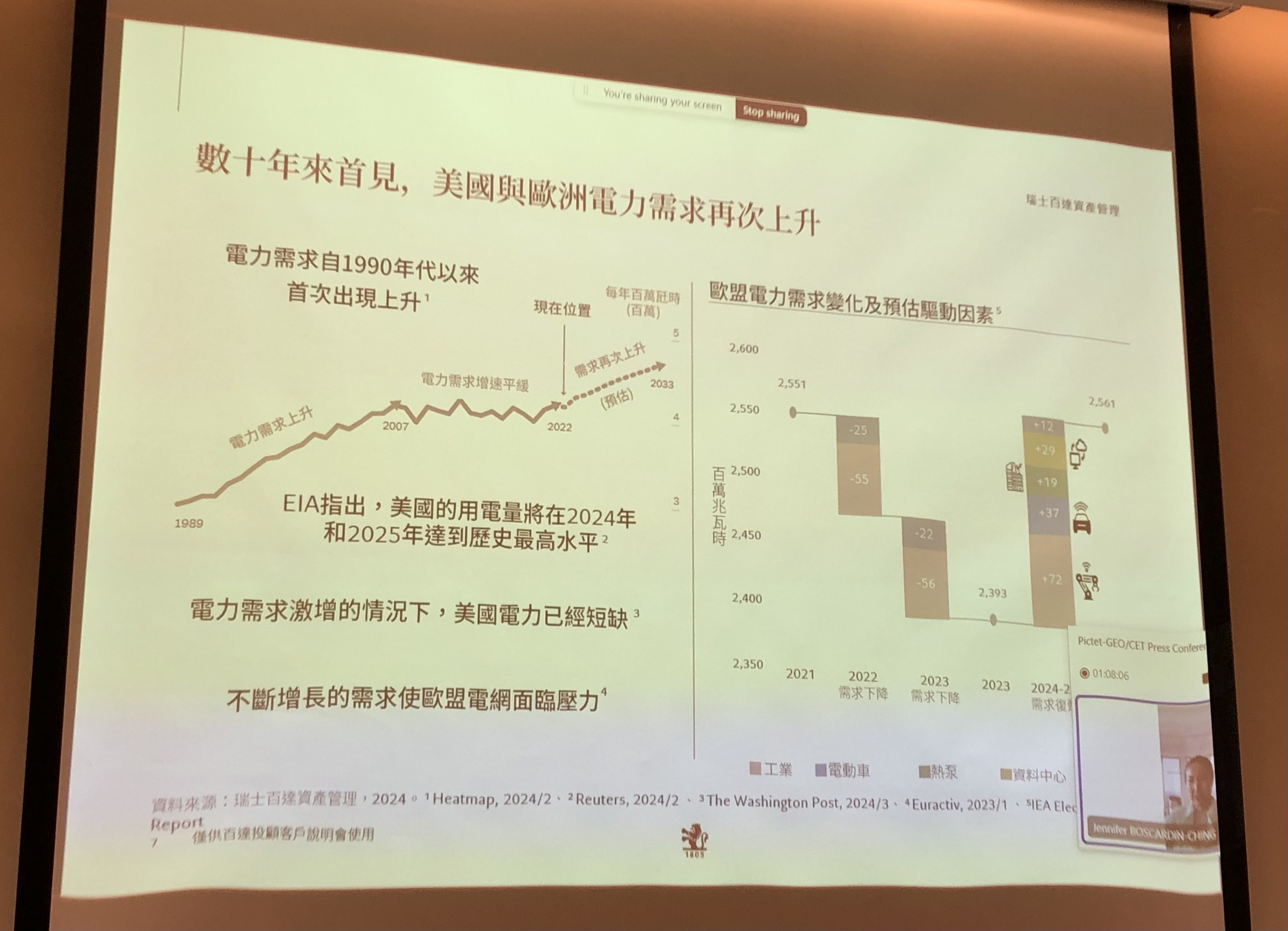 說起能源轉型相關產業前景,Jennifer Boscardin-Ching指出,美國與歐洲的電力需求再次上升,是數十年來首見。(如下圖,記者李錦奇攝影)