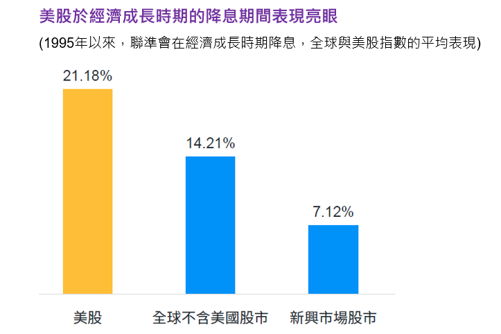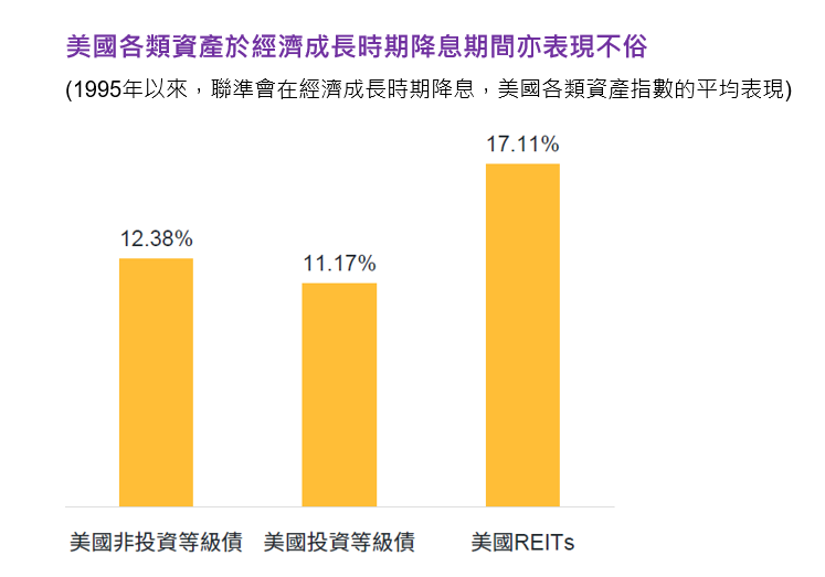 摩根大美國領先收成多重資產基金基金經理人楊若萱指出,過去30年來,當聯準會在經濟成長期間啟動降息,則美國資產在降息期間的表現都相當亮眼,美股的平均報酬是21%,優於全球不含美國股市的14%和新興股市的7%;同一期間,美國投資等級債以及非投資等級債平均亦有約10%漲幅,甚至美國REITs的漲幅還高達17%,顯示在景氣軟著陸之際,美股、美債和REITs等多重資產,後市表現相當值得期待。