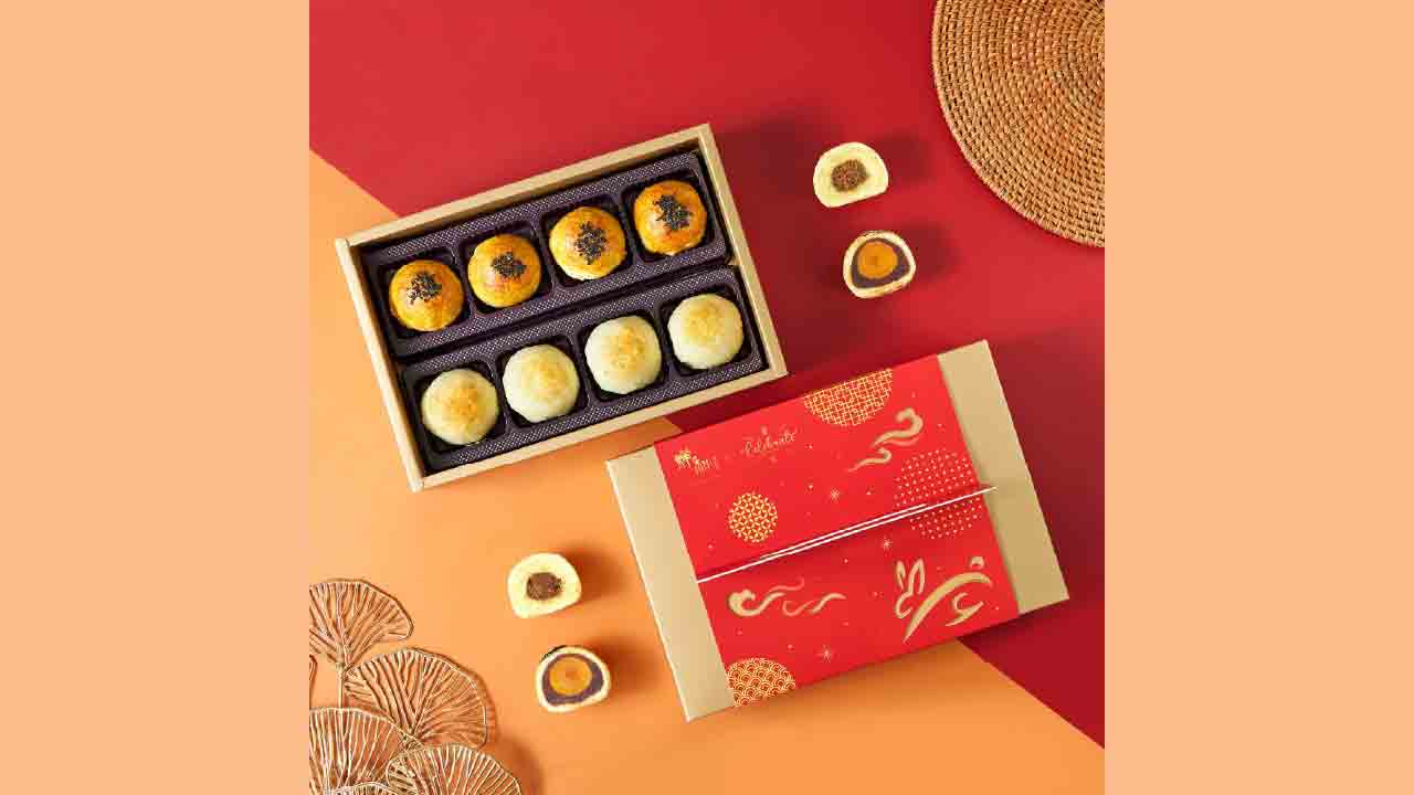 雙方共同研發的【祥和綠豆椪】,靈魂內餡由祥和主廚多年蔬食經驗炒製出特製素肉餡,再由慶祝師傅搭配台灣本土綿密細緻的綠豆沙搭配而成,半年研發、純手工製作,外皮選用日本昭和麵粉與紐西蘭奶油,一口吃下外皮酥香內餡鹹香,產出不同於以往市售的素綠豆椪風味。【慶祝蛋黃酥】,嚴選鹽漬33天的紅土鹹鴨蛋黃、Lurpak 歐洲冠軍奶油、日本熊本麵粉跟綿密低糖的紅豆沙內餡,每顆蛋黃酥呈現黃澄澄圓滾滾的飽滿模樣,吸引眾多粉絲們年年固定回購。