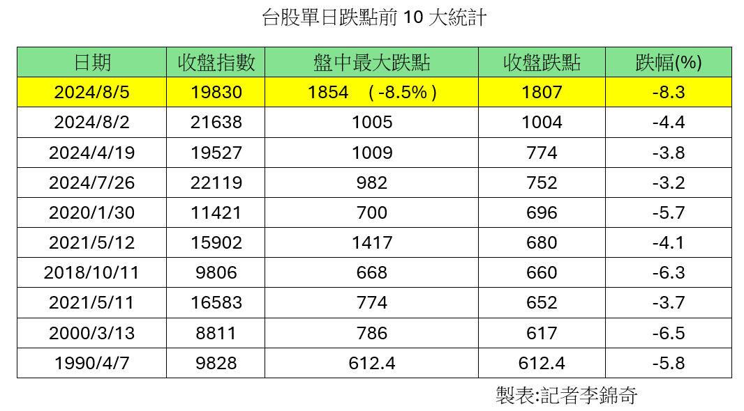 回頭看台股,同樣再創史上最慘紀錄,盤中最大跌點高達1854,跌幅8.5%;收盤仍崩跌1807點,跌幅8.3%,是今年4月以來新低位置;櫃買指數盤中最大跌點21.5,跌幅8.3%,收盤跌點20.2,跌幅7.8%,通通都創下史上單日最大跌點、跌幅紀錄。