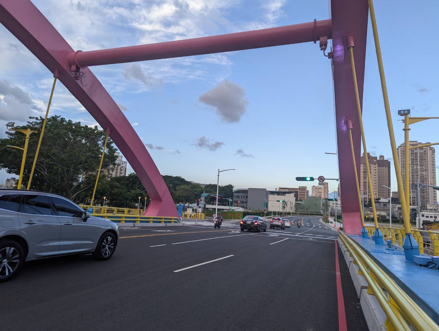 ↑圖說:龍德新路橫跨愛河銜接龍德東路至民族一路已於7月4日開通。(圖片來源:高雄市交通局提供)