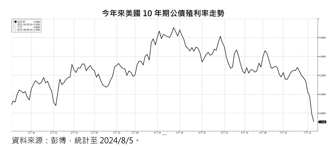 今年美國10年期公債殖利率在4月達到高點4.7%後,一路震盪向下,近期更一度落至3.71%,債券價格也跟著上漲。