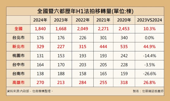 圖: 全國暨六都歷年H1法拍移轉量。來源:住展雜誌