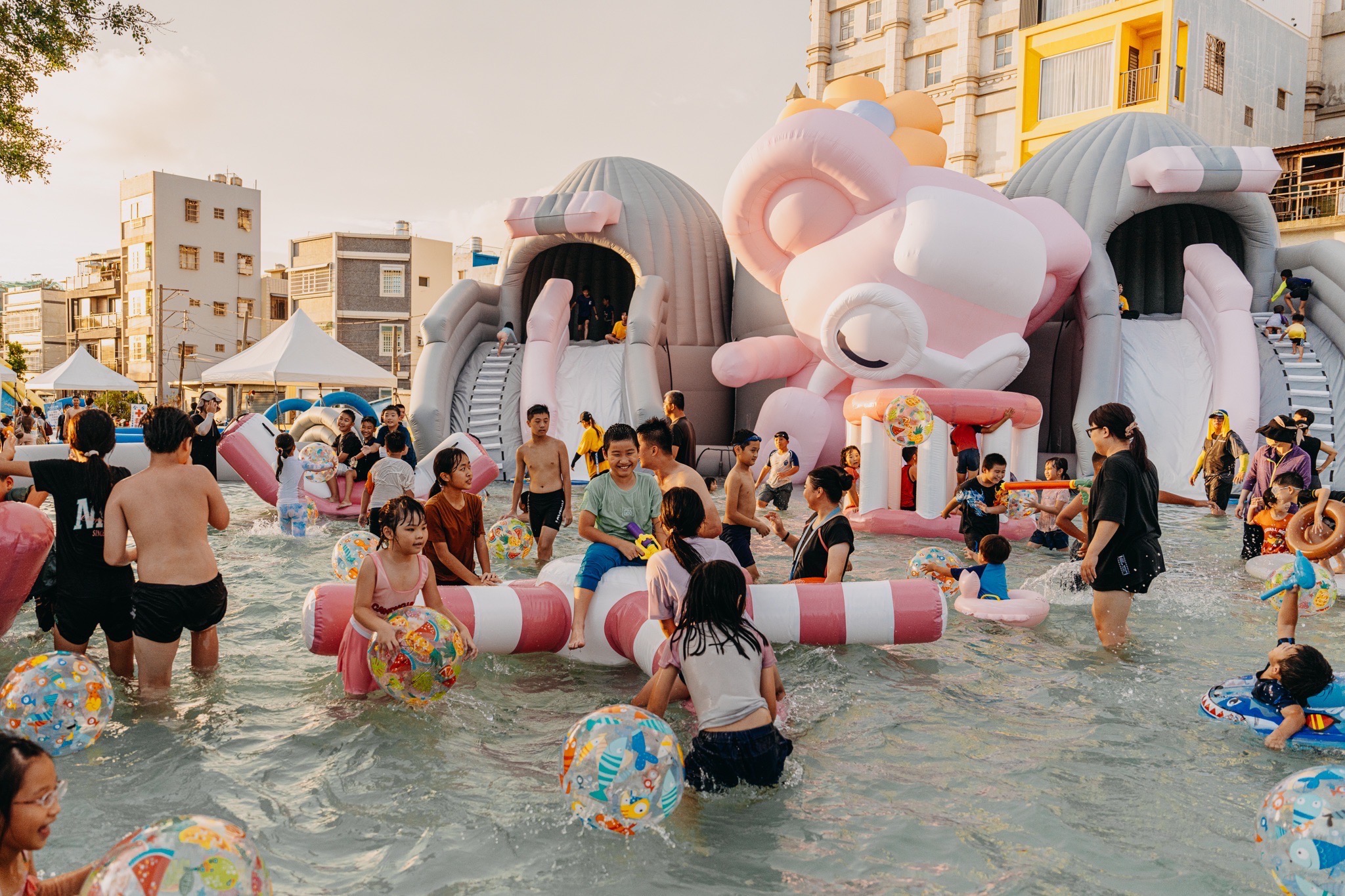 ↑圖說:氣墊水樂園消暑受到大小朋友歡迎(圖片來源:高雄市觀光局提供)