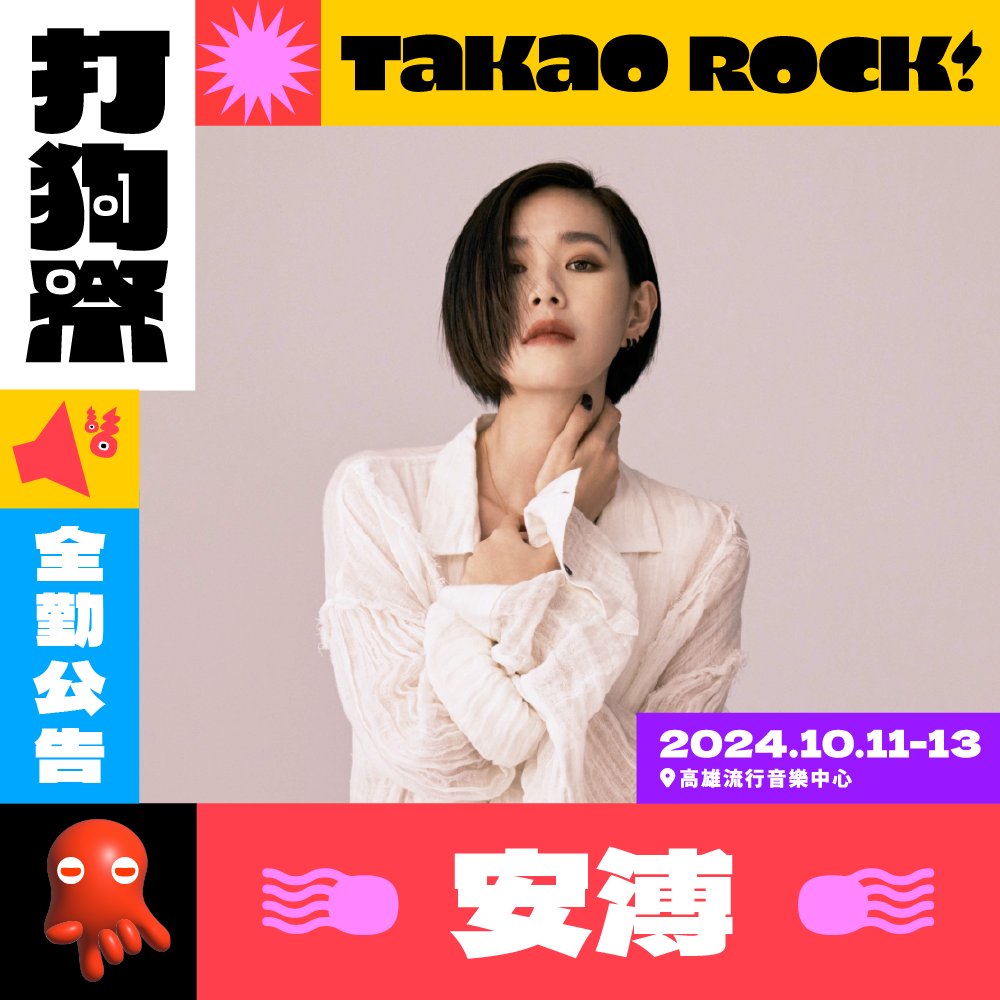即將在10月登場的TTXC 2024 Takao Rock打狗祭,7月22日門票開賣以來已陸續公布3波特色卡司,上週加碼公布唯一「全勤資優生」驚喜卡司,預告安溥將第四度站上打狗祭舞台。12日再公布第四波前夜祭卡司,由同樣來自高雄的大象體操 Elephant Gym、巨大的轟鳴 Gigantic Roar、草地人 THE LOCALS,在睽違多年後重聚同登打狗祭前夜祭舞台,分別以在高雄練就的數字搖滾、龐克搖滾風格。帶領所有歌迷們回味當年一起高歌「再向前走、大步走」的感動與回憶,也為今年打狗祭揭開序幕。