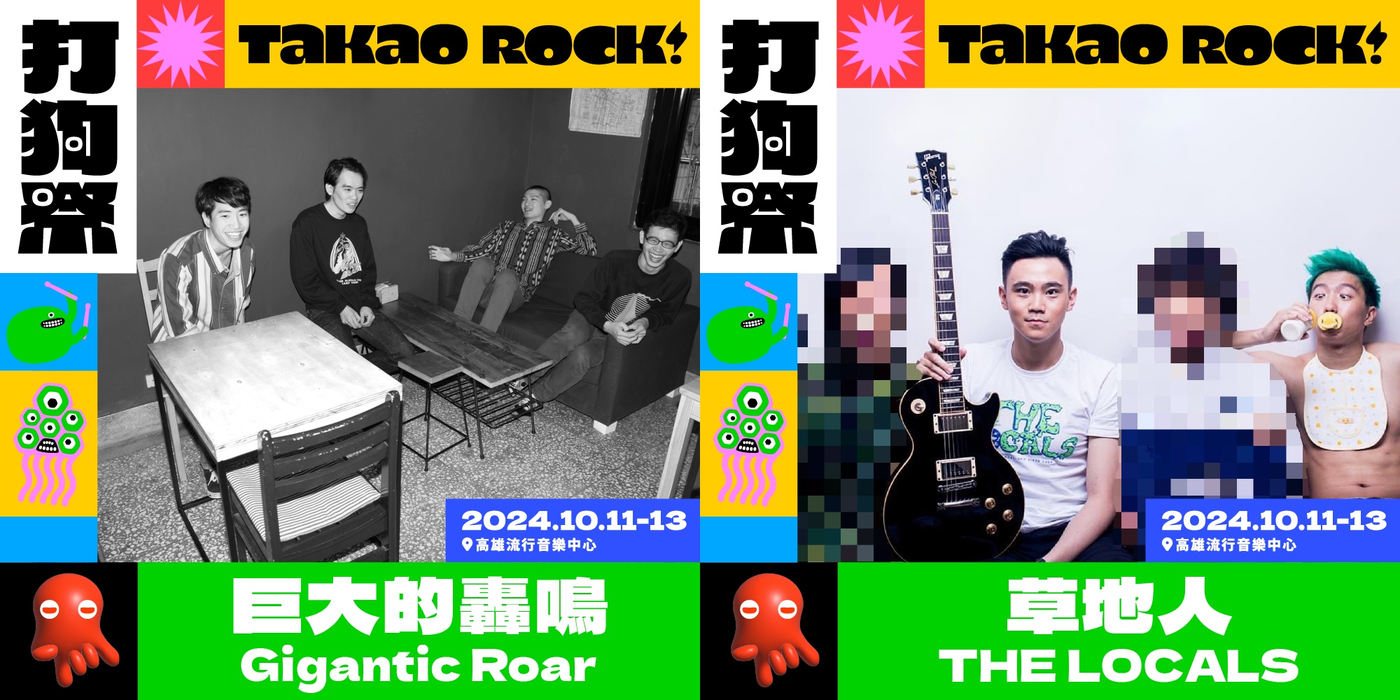 ↑圖說:巨大的轟鳴 Gigantic Roar(左)、草地人 THE LOCALS(右)兩支樂團則都是首度獲邀在打狗祭演出(圖片來源:高雄流行音樂中心提供)