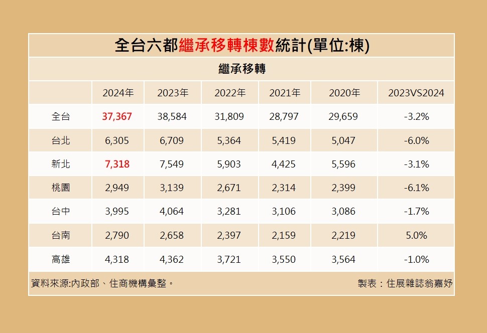 7月「囤房稅2.0」上路,全台「富爸媽」們紛紛卯起來送房,根據內政部統計,全台上半年贈與、繼承移轉棟數達28,771、37,367棟,創下自1991年有統計以來同期最高與次高紀錄,住商不動產企劃研究室執行總監徐佳馨分析,近期政府推出選擇性信用管制,加上囤房稅2.0,高資產族為達節稅功效,大多選擇贈與房產與親人,使贈與移轉棟數成長不少。