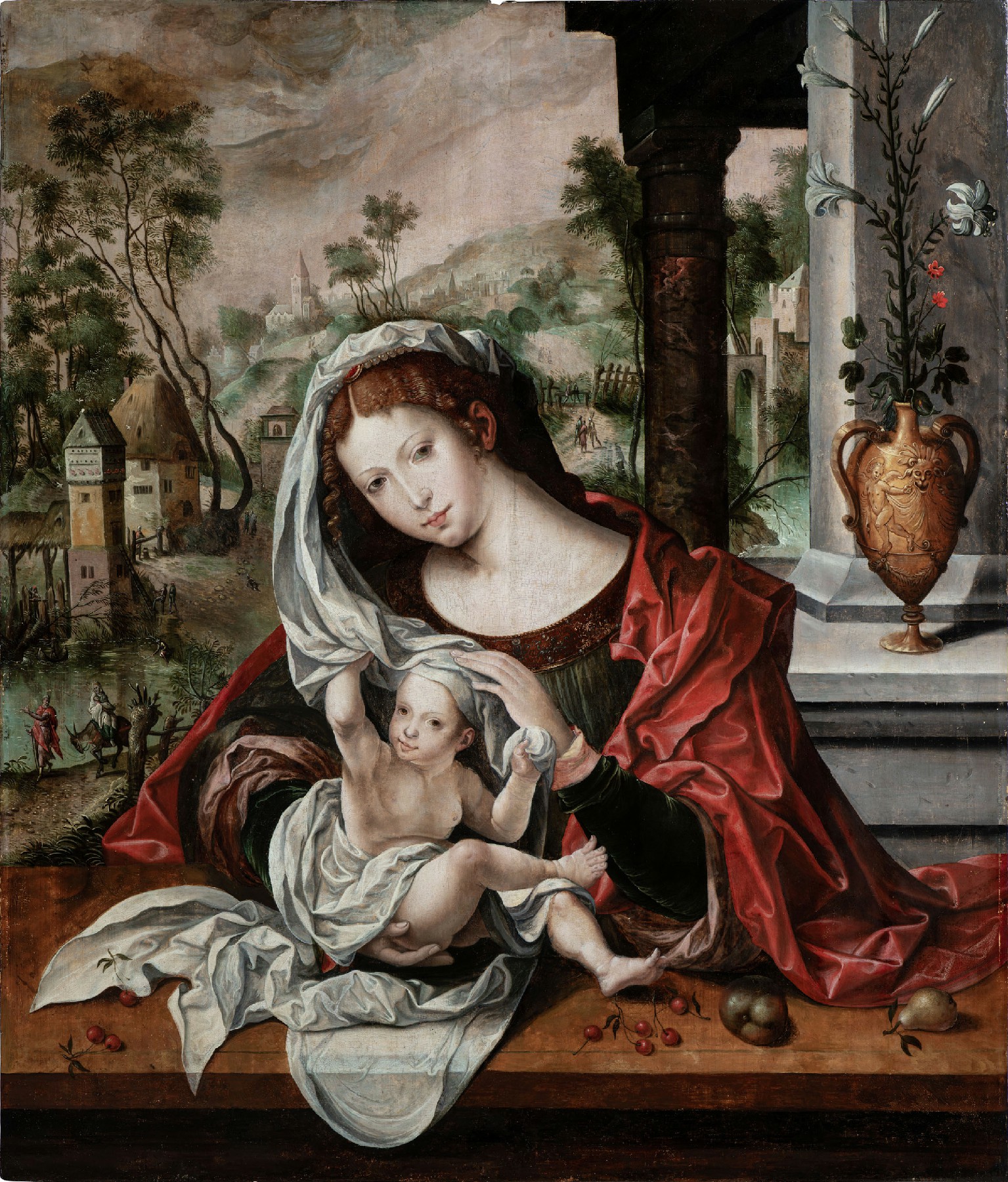 ↑圖說:奇美博物館珍藏展《畫師們》,(仿)楊.荷賽特作品〈聖母子〉,畫面背景的風景被視為是引領觀眾冥想、禱告的元素。(圖片來源:奇美博物館提供)