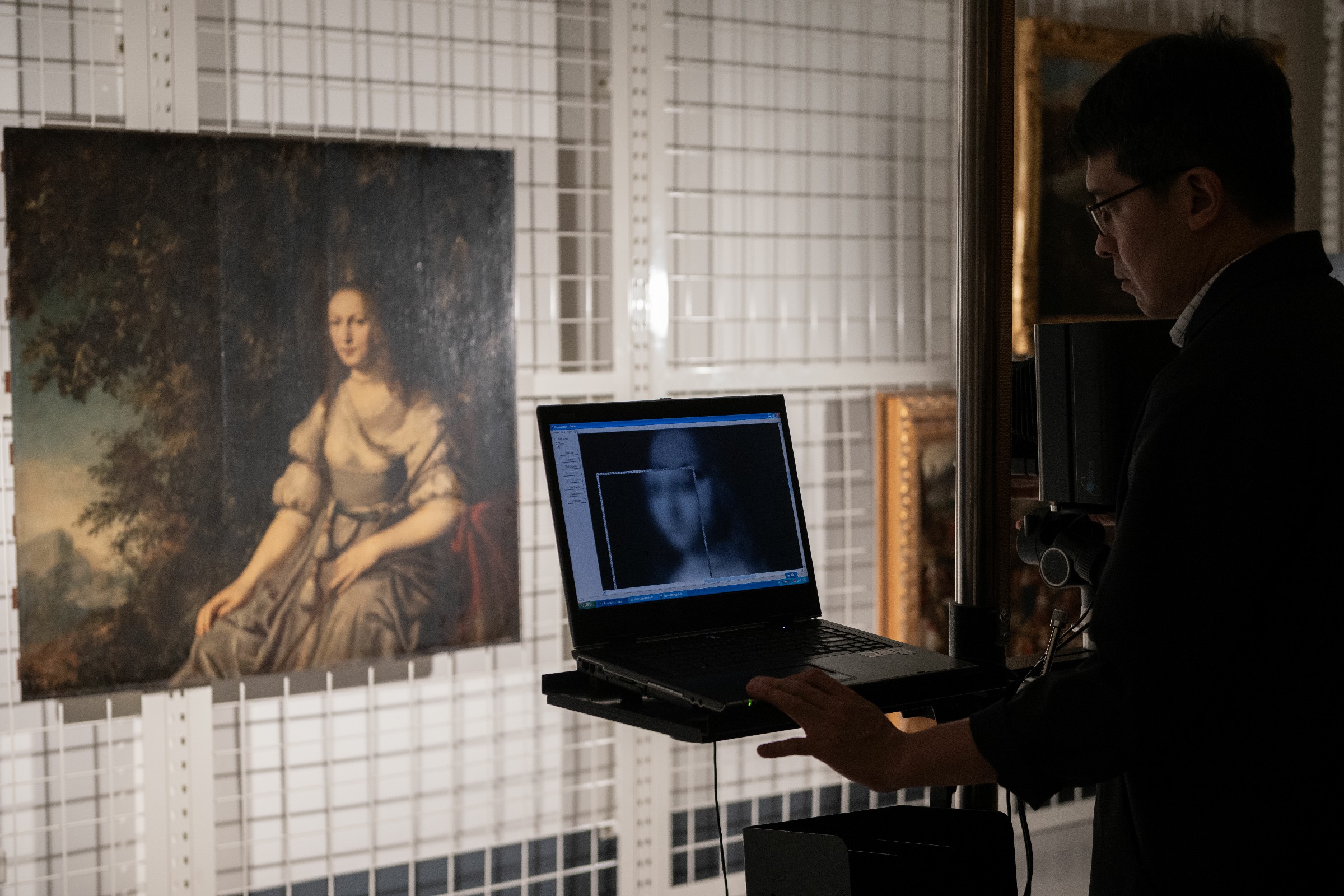 ↑圖說:奇美博物館透過科學檢測尋找具有參考價值的文物資訊,探索畫作不為人知的祕密。圖為紅外線反射影像之拍攝。(圖片來源:奇美博物館提供)