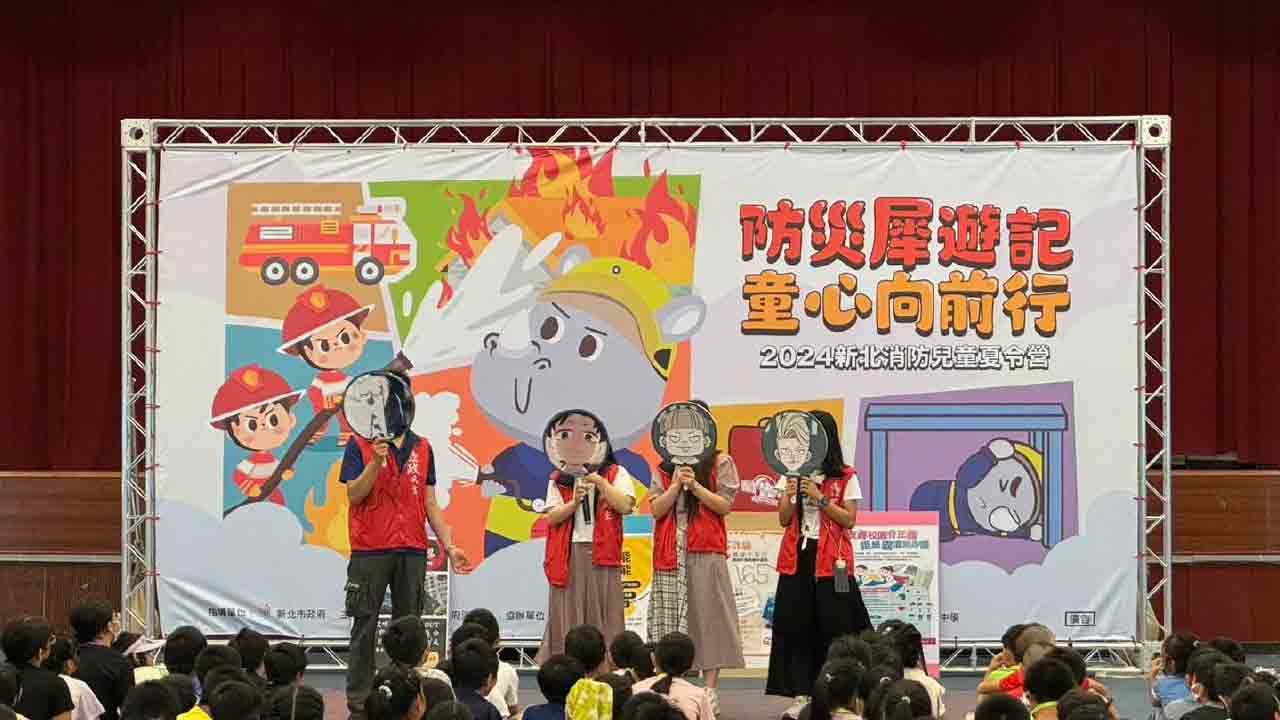 【新北市訊】時值暑假期間,新北市政府消防局秉持深耕全民防災教育、培育學童思辨能力及正確價值觀之理念,自101年起持續辦理「新北消防兒童夏令營」活動迄今且廣獲好評,自8月12日及13日於本市新莊區新泰國民中學連2天熱鬧登場,共有400名本市國小學童熱情參與,透過趣味盎然之分組競賽「犀」手過關斬將,進行濃煙災害現場體驗、室內消防擬真射水訓練、AR星火求生互動式遊戲等,歡渡盛夏光年。