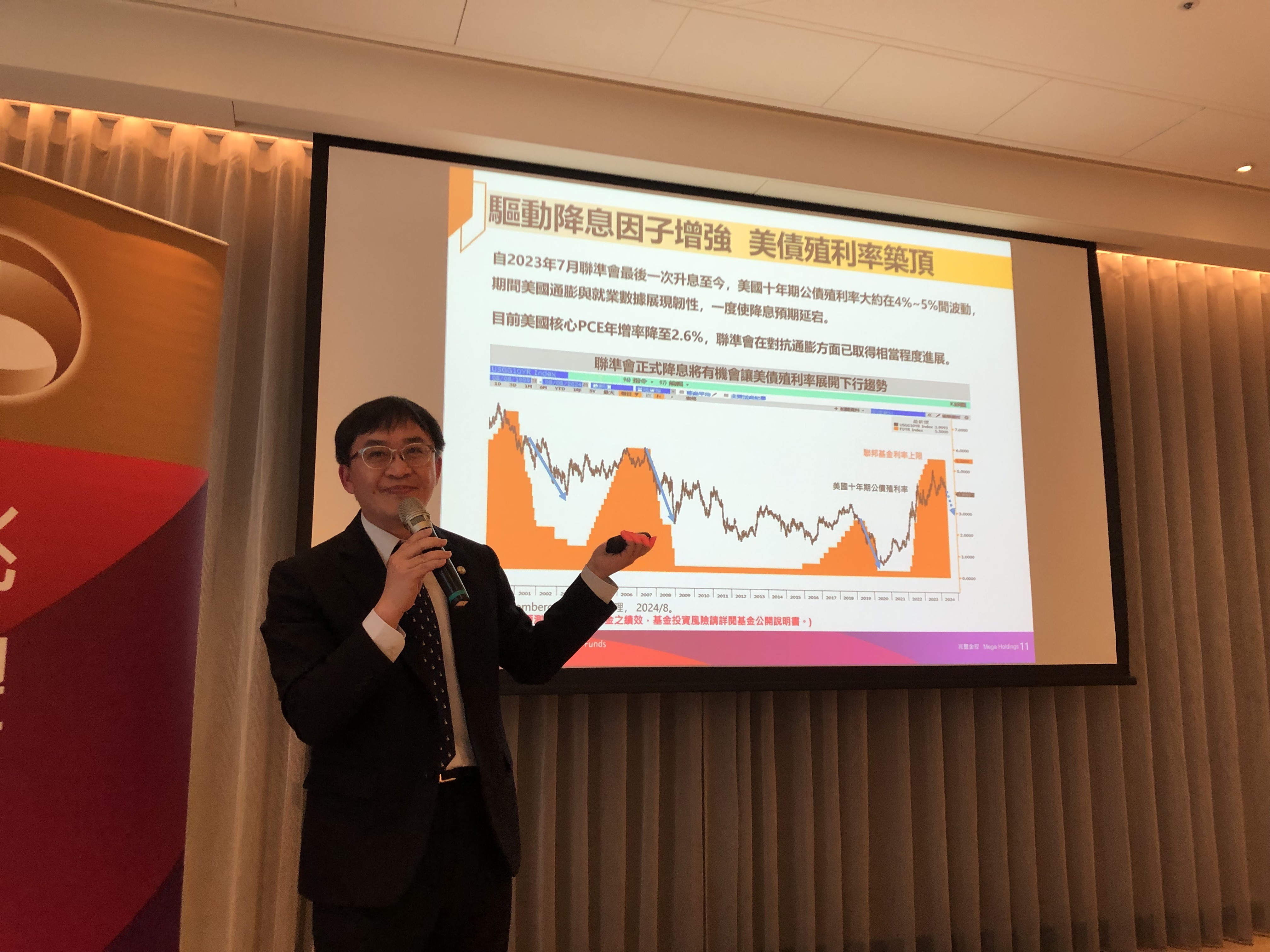 林忠義說,依照過去經驗,聯準會一旦降息,會讓美債殖利率展開下行趨勢,會有波段行情,因此,現在進場佈局債券ETF,會享受波段行情,兼顧利息收入跟債券價格上漲的資本利得(如上圖,記者李錦奇攝影)。