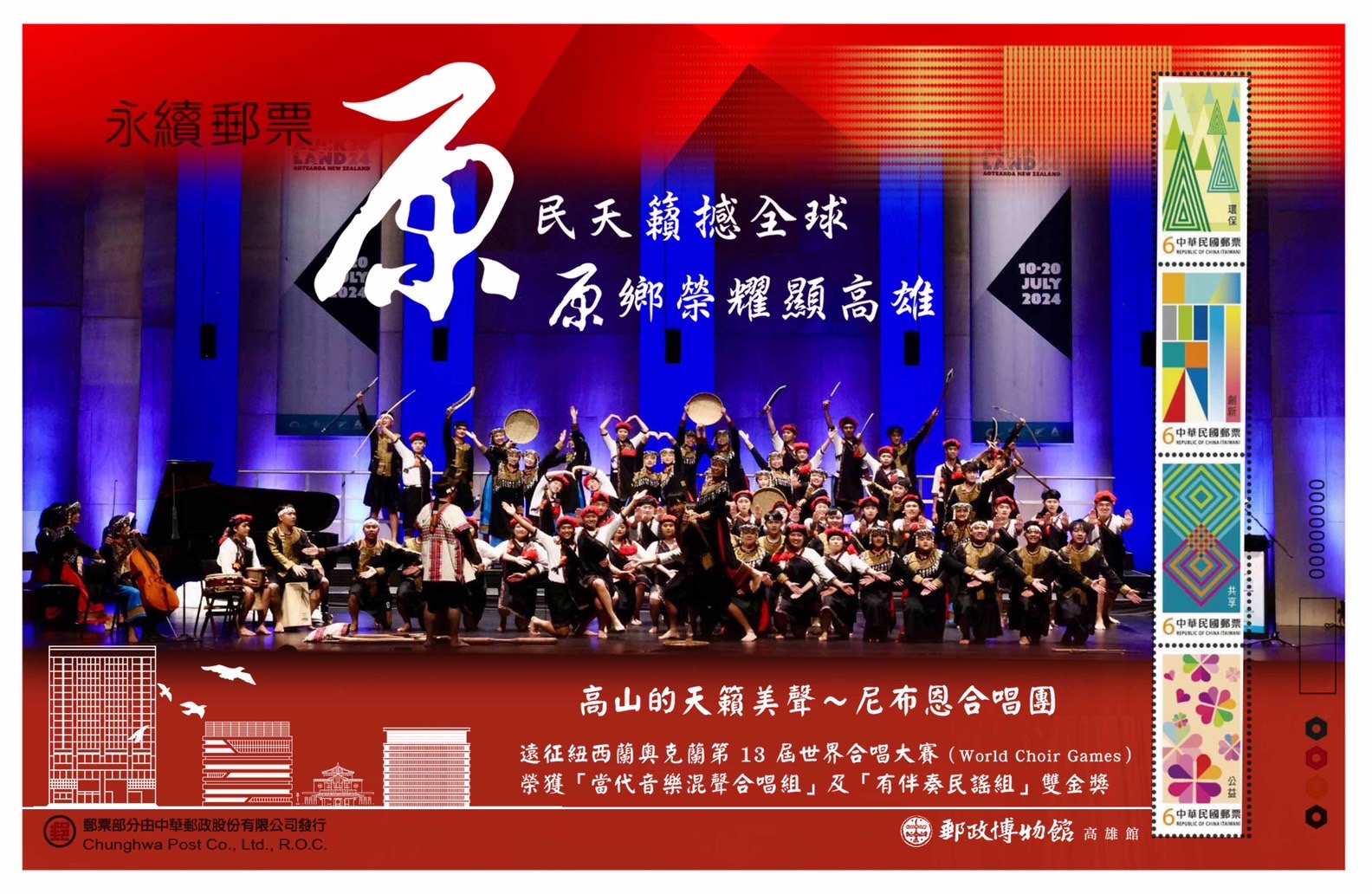 7 月中旬在紐西蘭舉行的第 13 屆世界合唱大賽(World Choir Games)中,來自臺灣高雄六龜、寶來、桃源地區的尼布恩合唱團、嘎呼拉斯兒少合唱團、寶來國中合唱團等9個合唱團共抱回10金、3銀佳績,總統賴清德、副總統蕭美琴第一時間透過駐奧克蘭辦事處拍發賀電。尼布恩合唱團15位團員8月13日下午也特地蒞臨「郵政博物館高雄館」,為現場參觀民眾獻唱天籟合音,以回饋感恩的心情表達對中華郵政全體員工的溫情關懷。