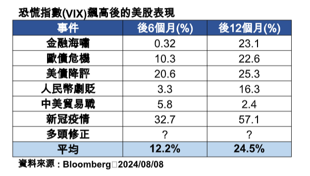 PGIM Jennison美國成長基金產品經理彭子芸表示,美股在市場發生極度恐慌後,往往能展現良好的彈升能力,從過去6次歷史事件統計,VIX指數飆升之後的6個月與12個月,美股S&P 500指數平均上漲12.2%、24.5%。
