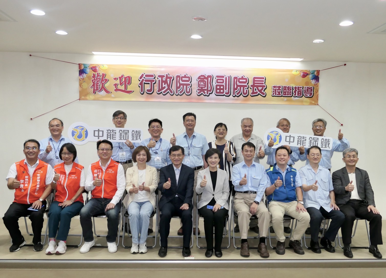 行政院副院長鄭麗君15日,在經濟部政務次長何晉滄、能源署副署長吳志偉及立法委員何欣純陪同下前往中龍鋼鐵公司視察,由中龍公司總經理呂紹榮及中龍企業工會理事長蔣秉松共同接待,相當肯定中龍節能績效。