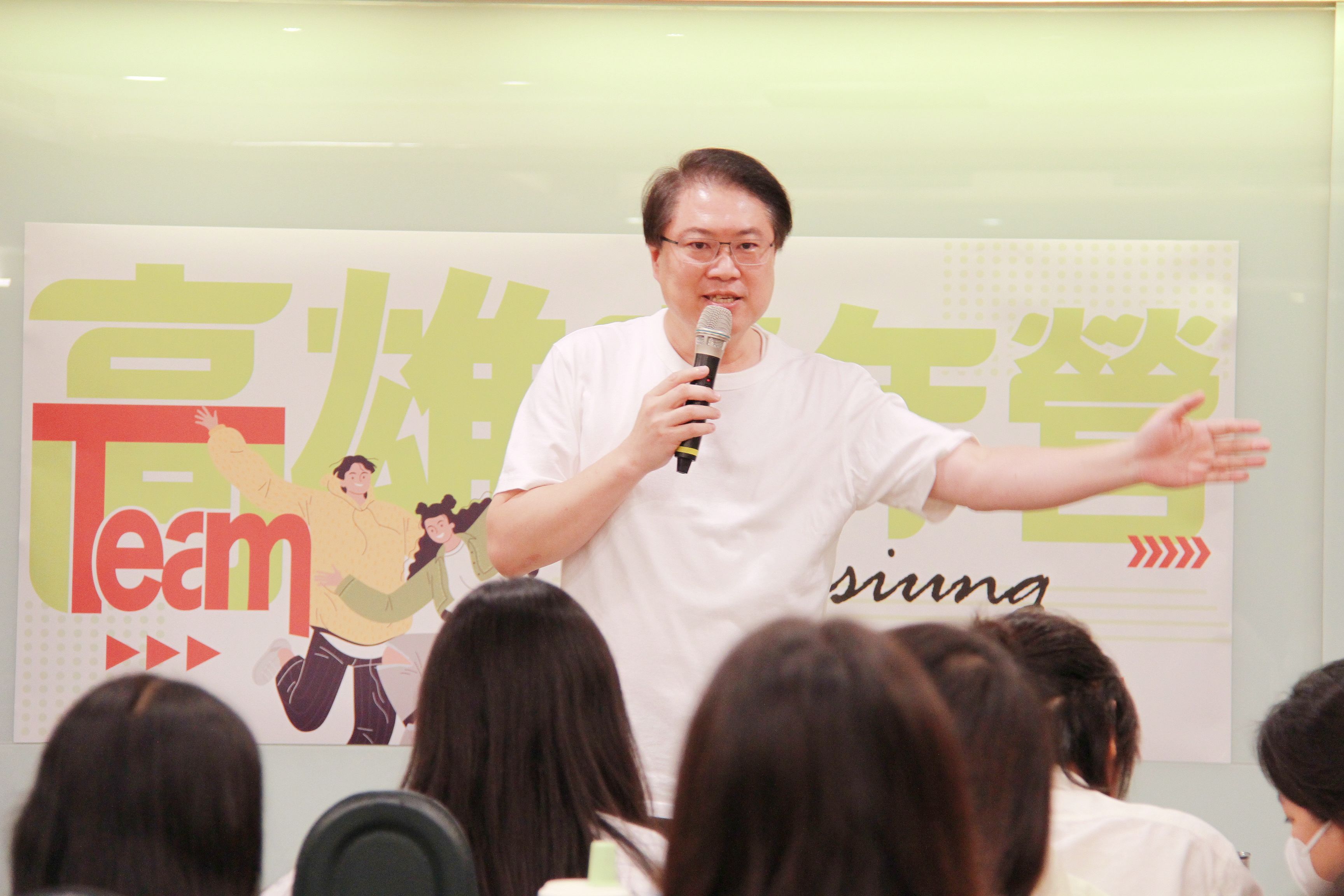 黃文益說明,「Team高雄青年營」以報載2026市長候選人為分組,兵推2026高雄市長選舉,讓學員以抽籤方式選出自己輔選的候選人,並為其量身打造及分析輔選計畫。