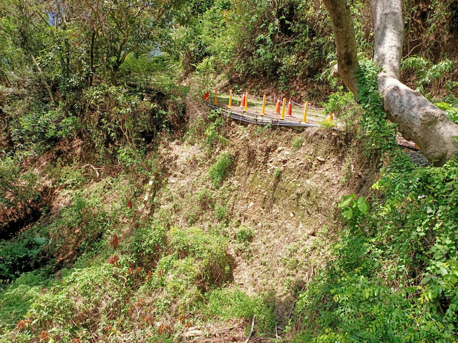 ↑圖說:野溪因向源侵蝕邊坡土砂流失(圖片來源:高雄市水利局提供)