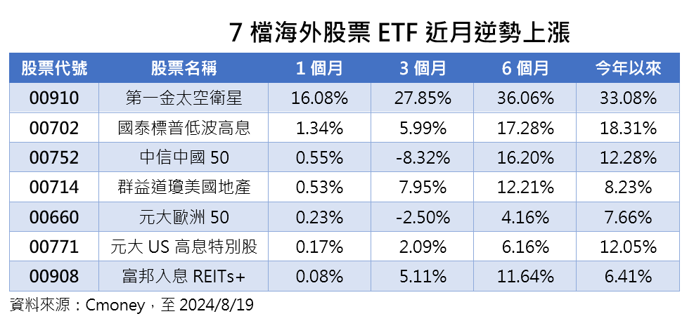 00910今天再噴漲近7%!7檔近月強勢海外股票ETF 一表掌握
