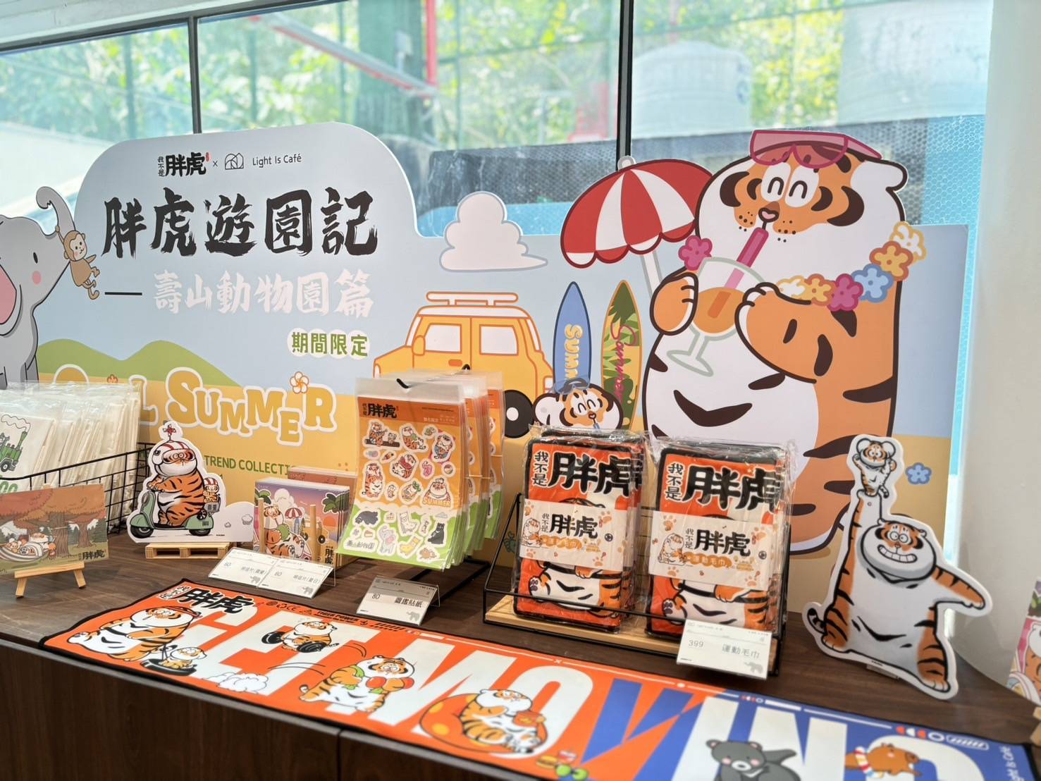 園區內由黑猩猩舊籠舍改造而成的「光室咖啡」,華麗變身為網美餐廳,每逢假日高朋滿座;除了美味的餐點,還能讓遊客感受從籠舍往外觀賞視角與獨特的景緻。「光室咖啡」自7月2日至9月8日與人氣貼圖IP「我不是胖虎」聯名推出「胖虎遊園記——壽山動物園篇」,包括「胖虎不胖」聯名餐點、運動毛巾、手機夾片掛繩等;特別是期間限定的「光室咖啡x我不是胖虎」奶蓋黑糖珍珠飲品,更是炎炎夏日首選,不僅滿足大小朋友的味蕾,購買可愛獨特的動物商品、紀念品更可遊園的美好心情延續到家。