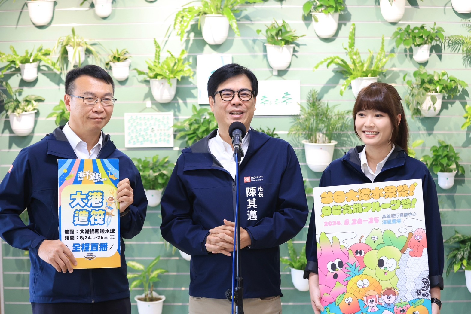 高雄市長陳其邁表示,本周末大港造筏活動將再次在大港橋舉辦,吸引超過百支隊伍報名參賽,網路上已經收到有人放話挑戰,陳其邁打趣表示「好膽莫走!」盼今年精研打造一支無敵艦隊,請大家拭目以待。