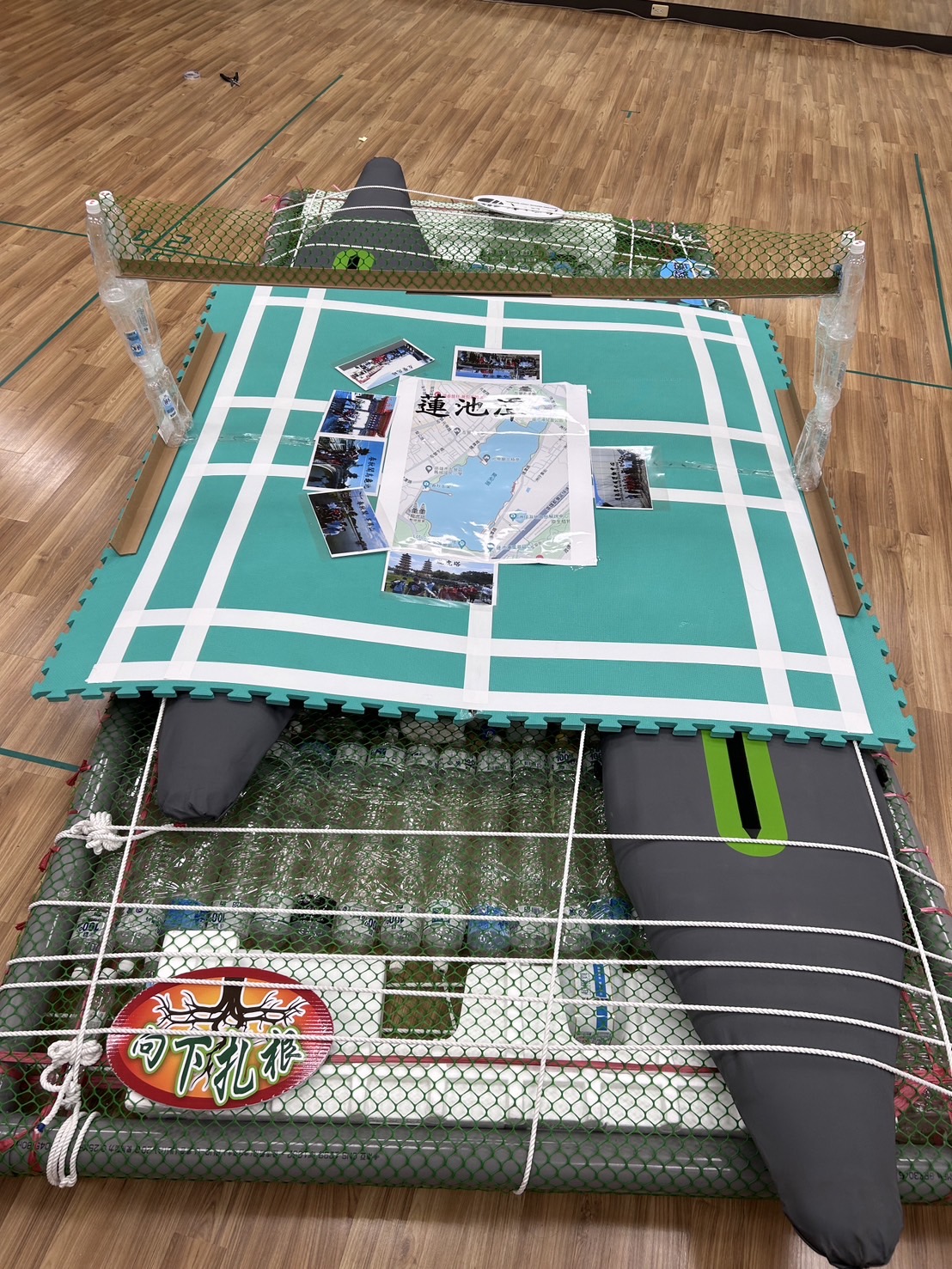 ↑圖說:左營高中師生結合羽球打造水上球場,期待來場大港海上羽球(圖片來源:左營高中提供)