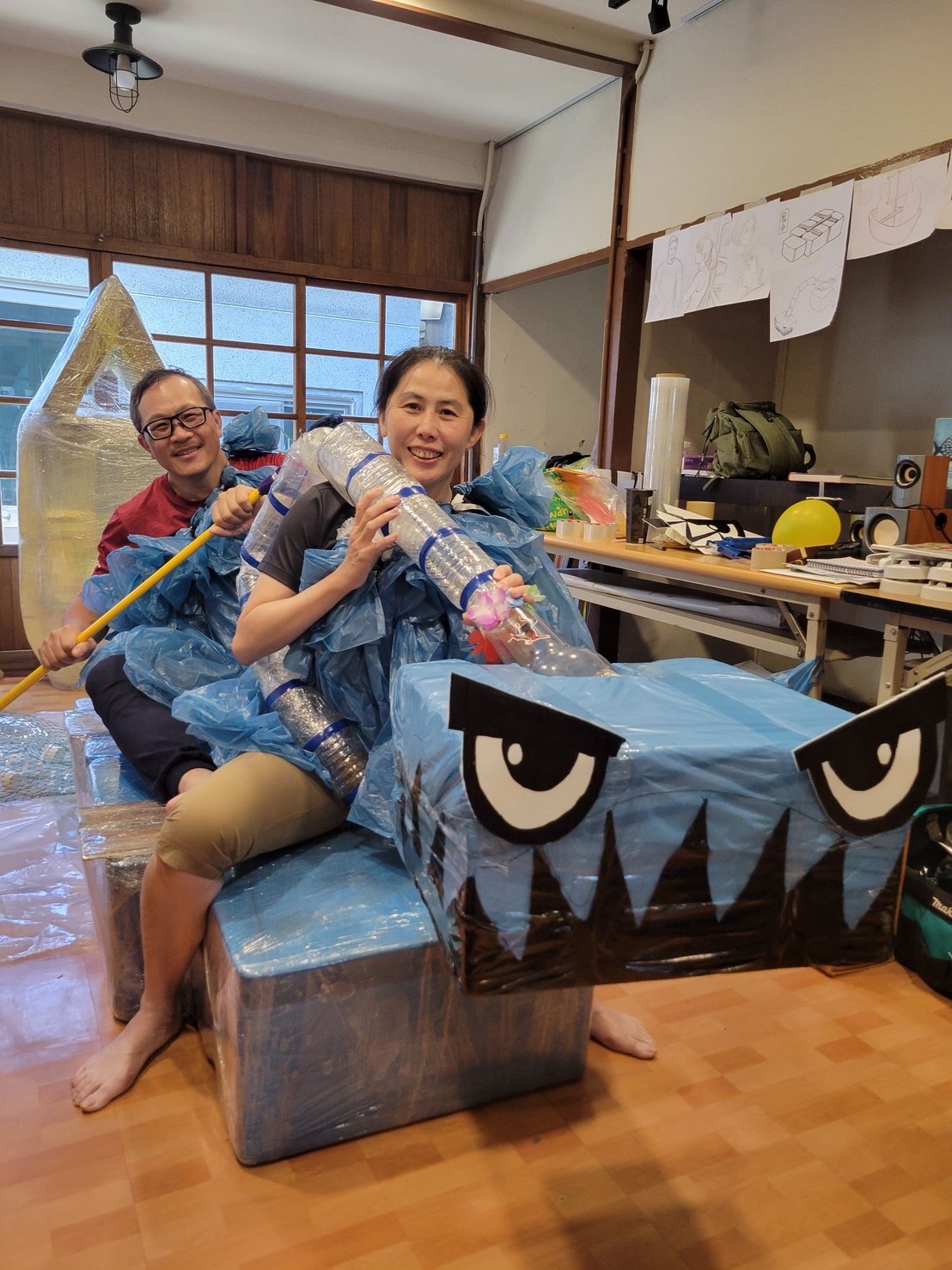 ↑圖說:車友團「臺灣獼猴隊」帶著海上吸塵器、火箭筒、瘋狂飛馬等特色船筏,喊話市長「麥擱輸啊」(圖片來源:臺灣獼猴提供)