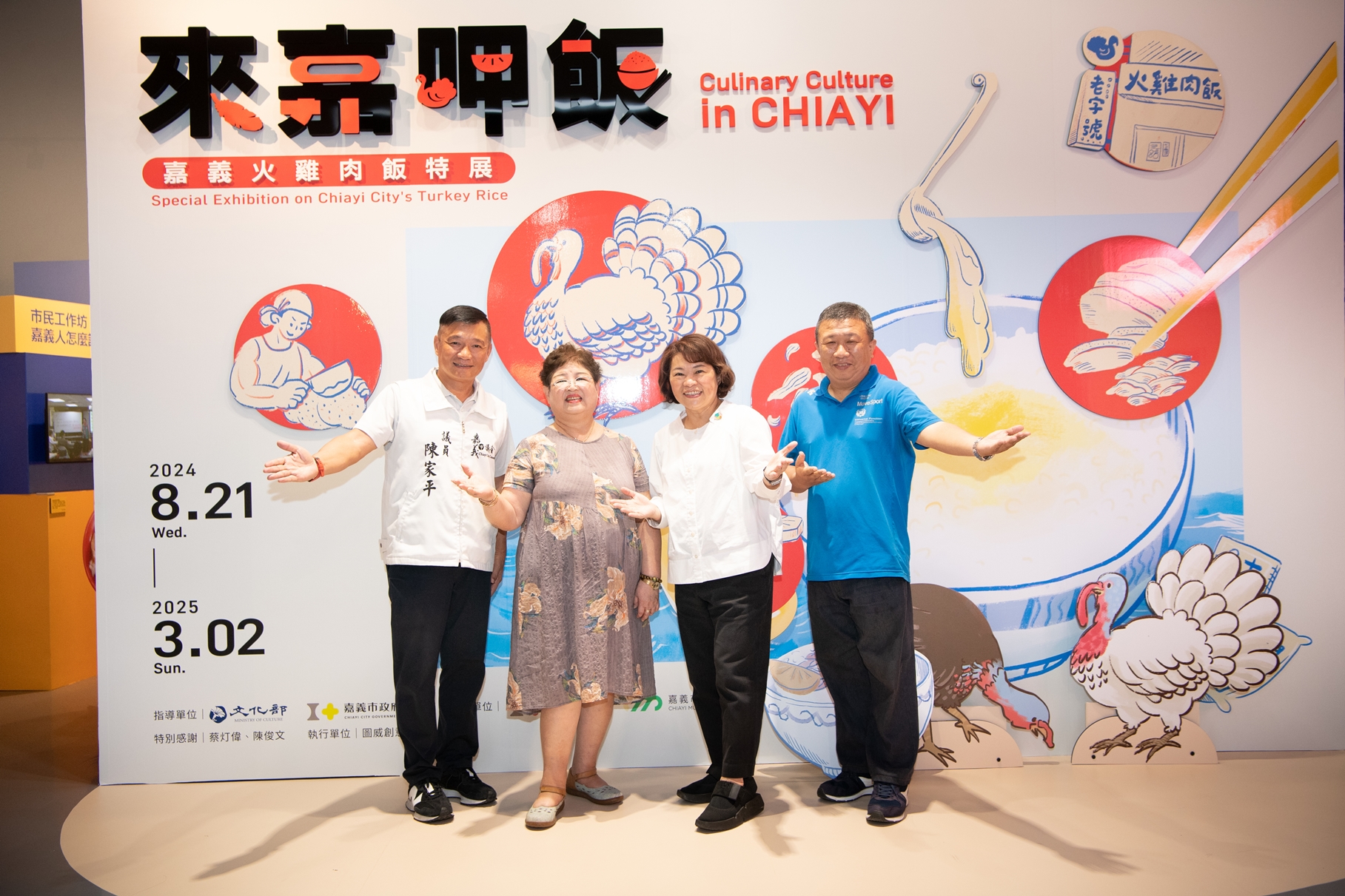 嘉義市立博物館21日起展出《來嘉呷飯─嘉義火雞肉飯特展》,展覽以火雞肉飯為主軸、嘉義市區為範疇,透過外來食材在地化的過程,描繪嘉義地方社會與日常生活的樣貌。 嘉義市長黃敏惠出席開幕典禮,盛情邀請全國各地的好朋友「來嘉呷飯」,感受和火雞肉飯一樣溫暖實在的城市精神,一起探究看似簡單的一碗飯,背後所蘊含的故事和學問。