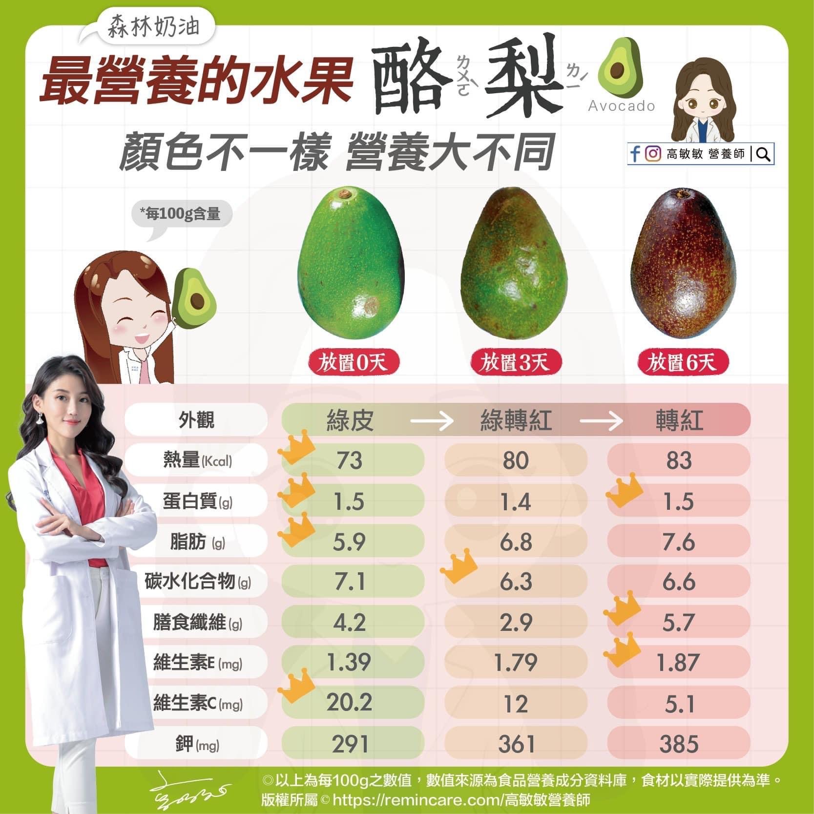 奉上酪梨營養比一比(以下為每100g酪梨含量)