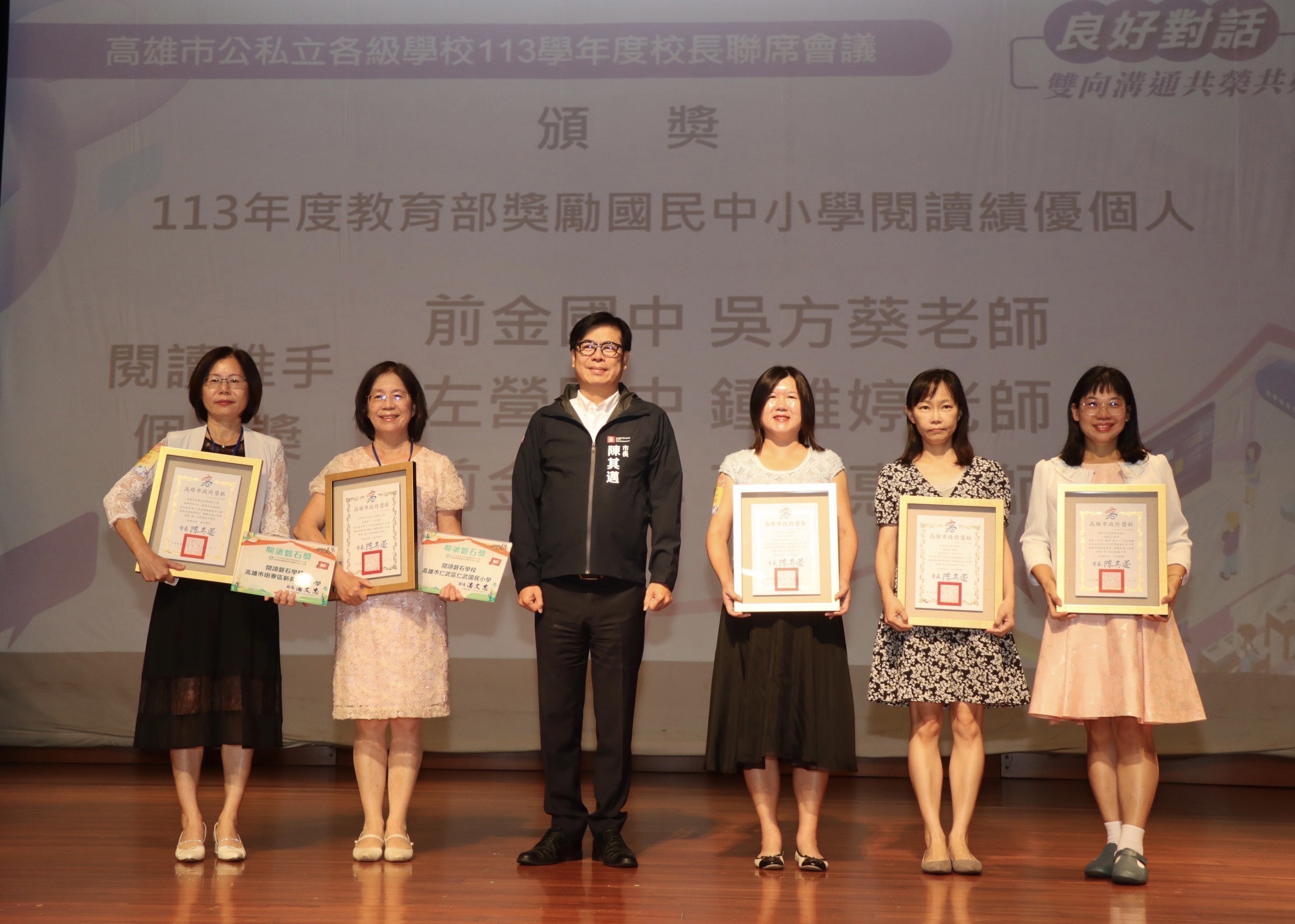 今年高雄市各級學校表現優越,現場也頒獎表揚績優學校。而透過聯席會議的召開,讓全市各級學校校長、園長、候用校長們有機會共聚一堂,彼此交流辦學的經驗,期盼藉由專題的探討,促發校長們思考教育未來。