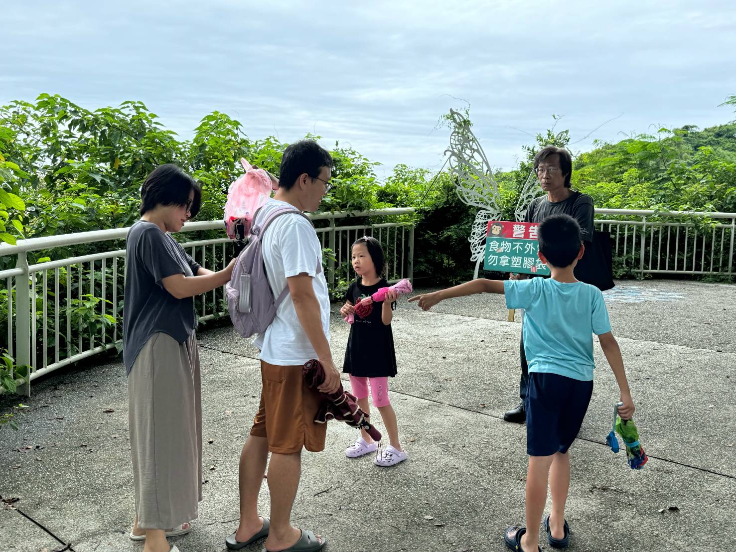 ↑圖說:台灣獼猴共存推廣協會在園區外熱點勸導遊客收好物品,降低人猴衝突。(圖片來源:高雄市觀光局提供)
