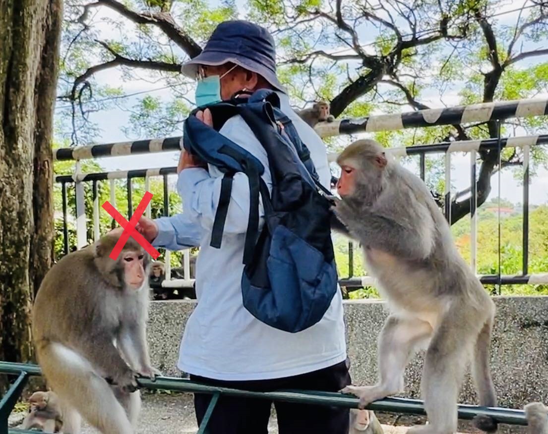 ↑圖說:任意接觸獼猴可處新臺幣5000元至1萬元罰鍰(圖片來源:高雄市觀光局提供)