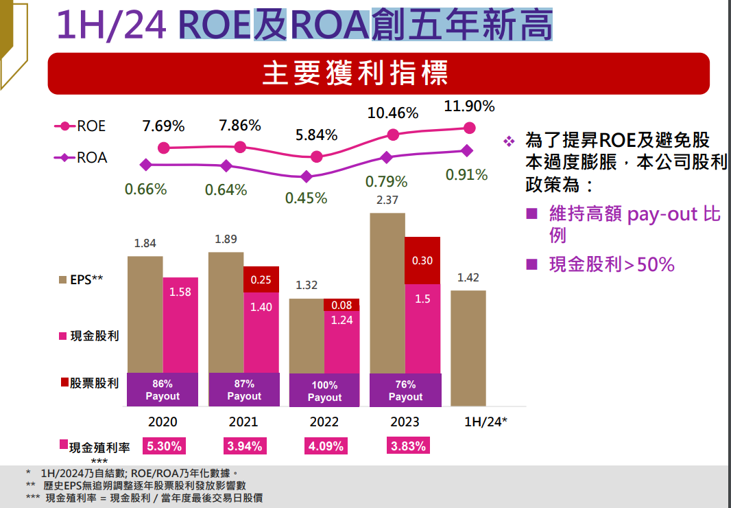股東權益報酬率(ROE) 11.9%及資產報酬率(ROA)0.91%,都創五年新高。