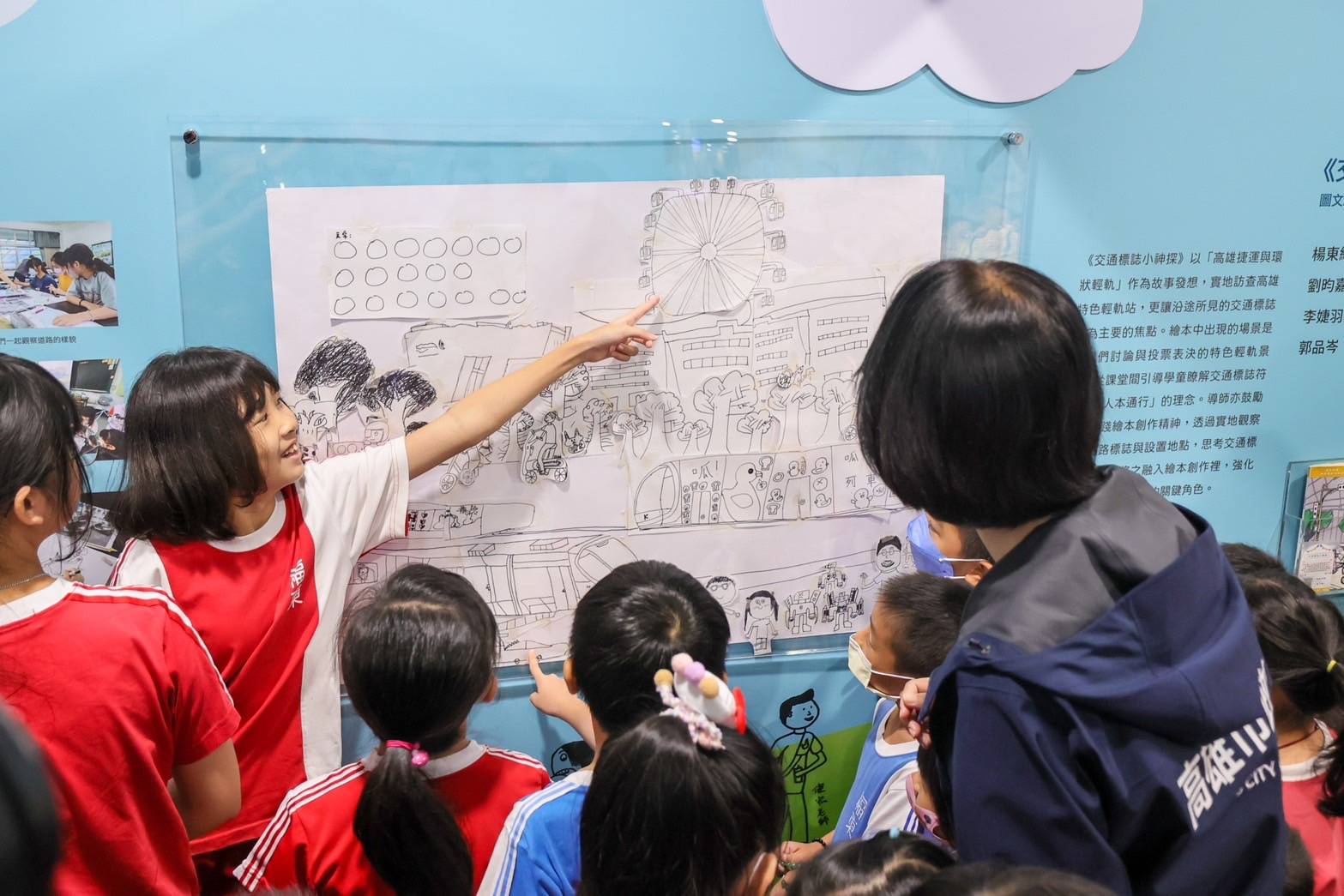 啟動交通安全教育從小紮根概念,高雄市政府交通局與文化局合作規劃,邀請在地作家至苓雅區福東國小帶領繪本創作, 從故事腳本、角色設計到圖像繪製,16位學童在繪本作家一學期的實地帶領下,創作出獨一無二的作品《交通標誌小神探》,讓大家能跟著孩子以小神探的視角認識交通號誌、觀察輕軌路線與體驗故事,透過富饒創意的圖像理解人本交通安全。