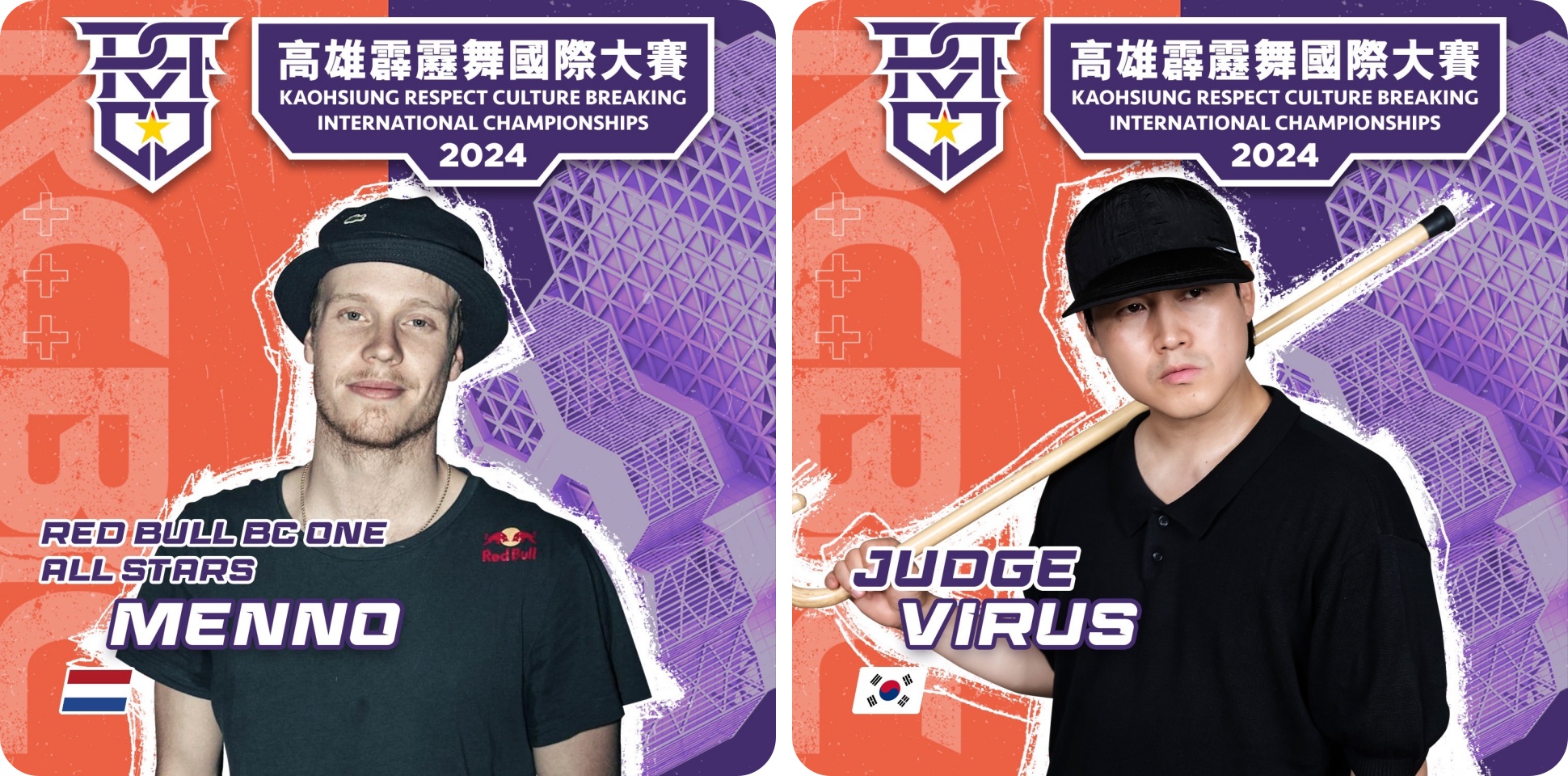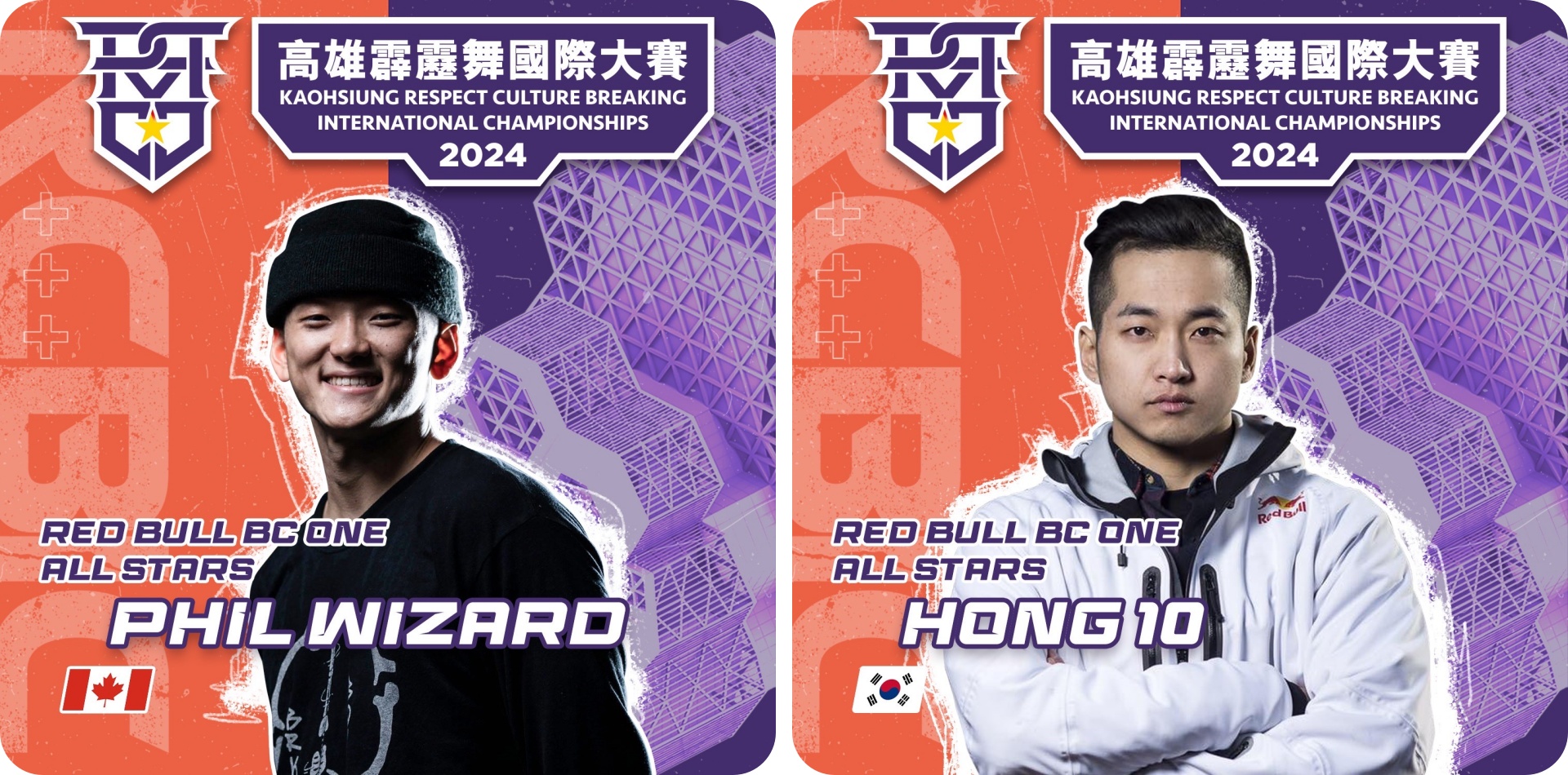 此外,韓國的霹靂舞傳奇Hong 10與荷蘭的Menno也將一同現身賽事。Hong 10在2006年、2013年及2023年三度獲得Red Bull BC One世界冠軍,成為少數三度登頂的B-Boy,他那複雜的技巧和創新的動作風格,使他成為霹靂舞界的經典人物。Menno同樣不遑多讓,也三次奪得Red Bull BC One世界冠軍,其獨特的創意風格和精湛技藝讓他在國際舞台上屢次脫穎而出。