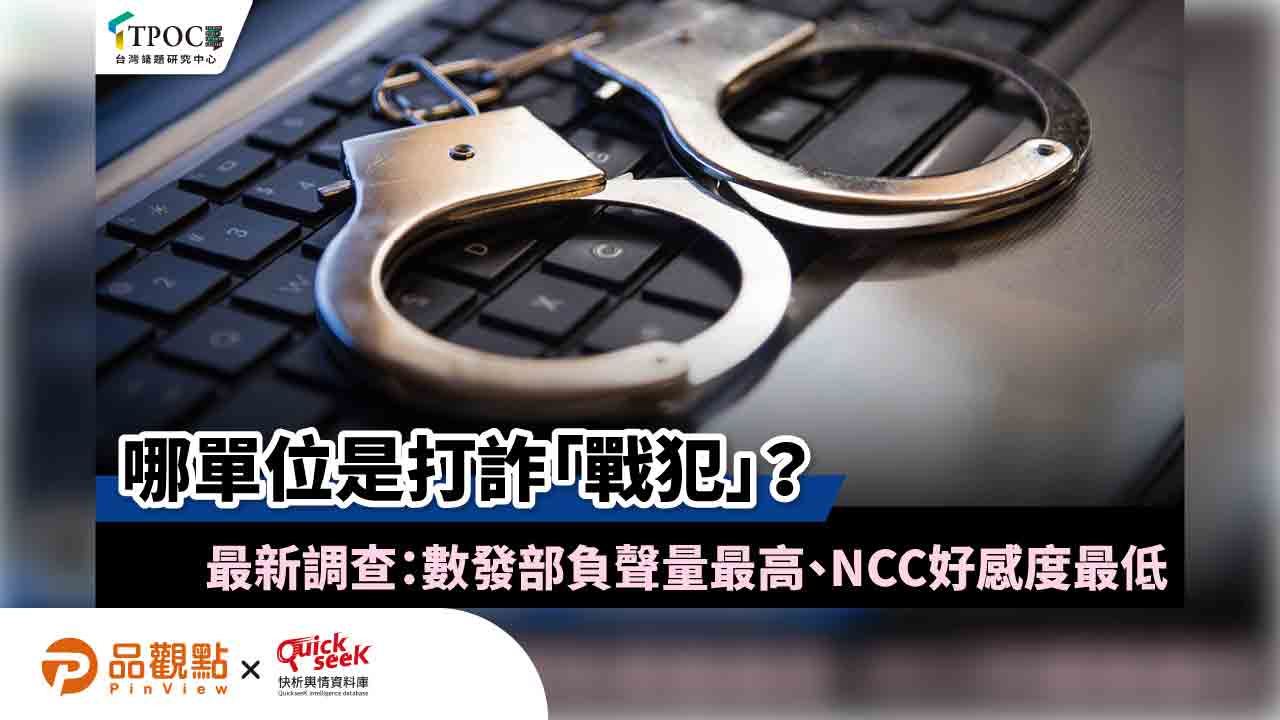哪單位是打詐「戰犯」?最新調查:數發部負聲量最高、NCC好感度最低