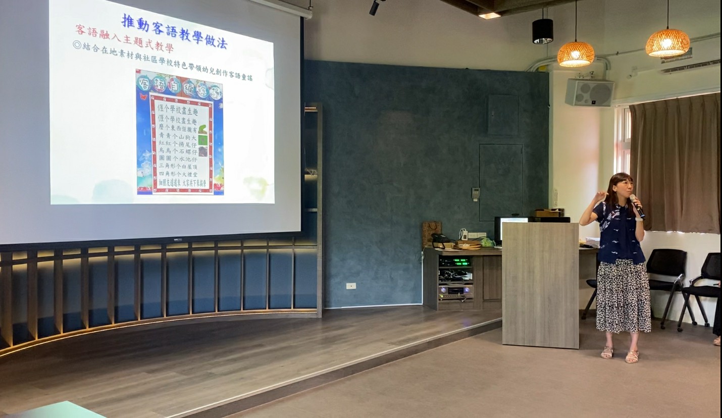 ↑圖說:廣興附幼劉家昕老師分享推動幼教客語教學做法(圖片來源:高雄市客家事務委員會提供)