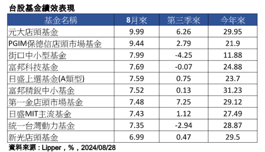 其中,PGIM保德信店頭市場與元大店頭基金績效都超過9%,另外有8檔基金績效也從7%起跳。