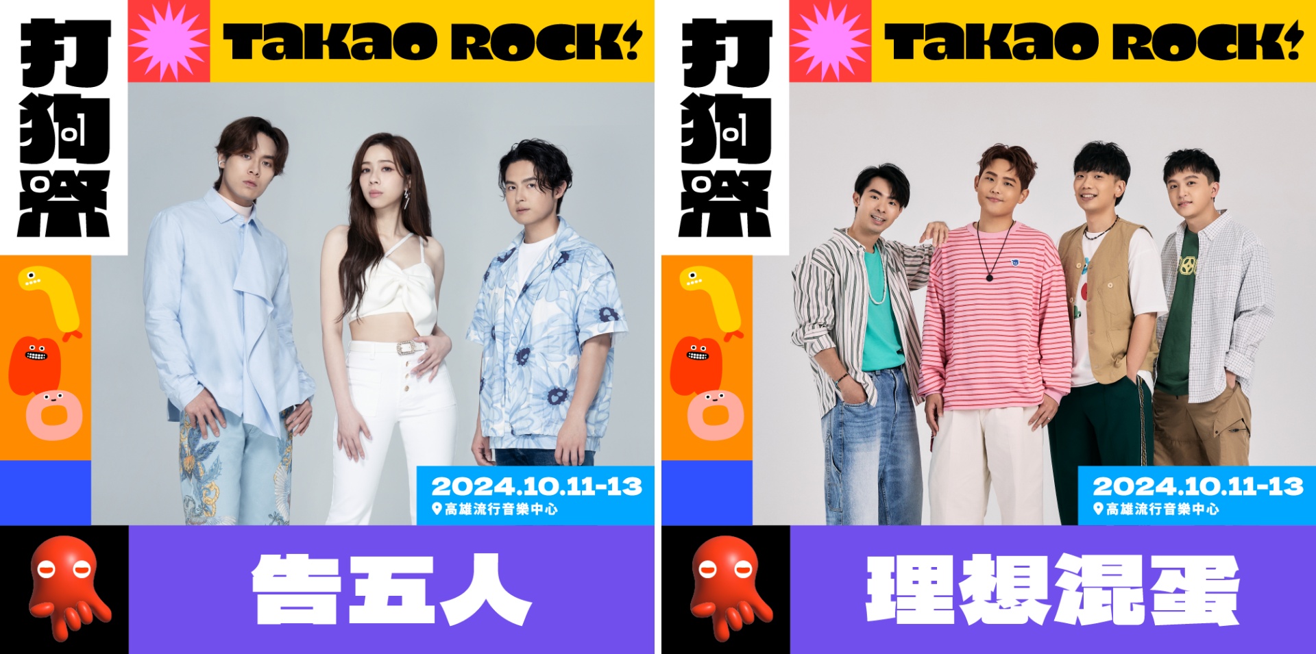 即將在10月登場的TTXC 2024 Takao Rock打狗祭,強棒卡司一波接著一波,第七波「一起大聲唱」特色卡司,包括首次參與的TRASH、老王樂隊、來自日本、Spotify每月超過兩百萬名聽眾的人氣樂團FLOW,以及告五人、理想混蛋、滅火器 Fire EX.、潮州土狗,將在打狗祭特色舞台演出,為打狗祭帶來另一波樂團迸發百花齊放,台上台下共同高歌的能量。