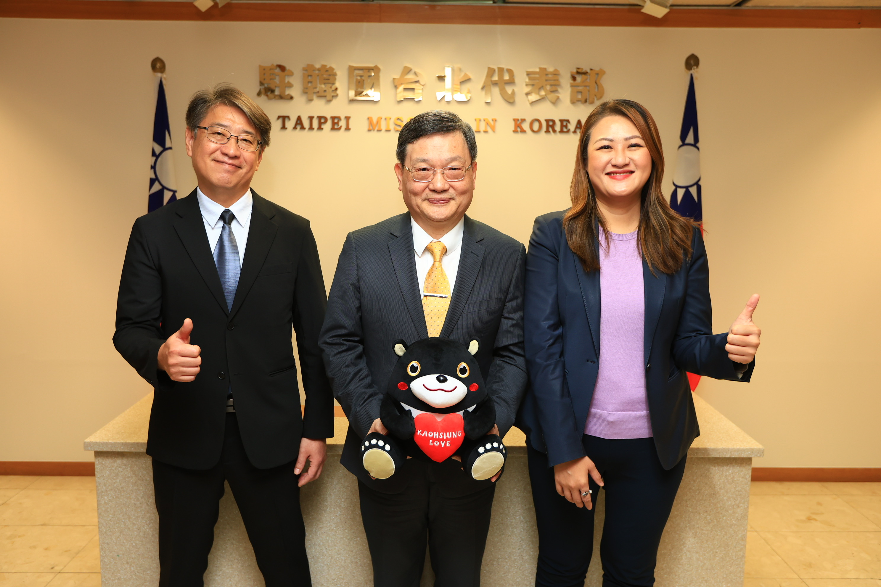 ↑圖說:高雄觀光隊拜訪我國駐韓代表處。(圖片來源:高雄市觀光局提供)