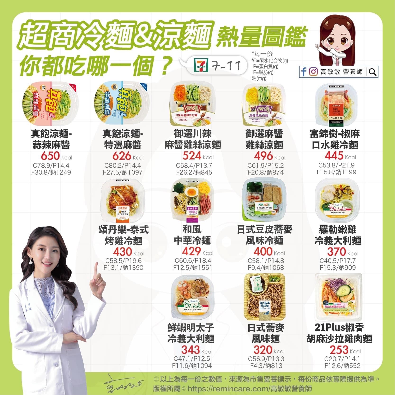 每到夏天總是吃不下飯,來碗涼涼的涼麵就很消暑呀!不過~明明是涼麵,熱量卻差一倍,奉上超商冷麵、超商涼麵熱量圖鑑,你都吃哪個?(以下為每一份之數值)