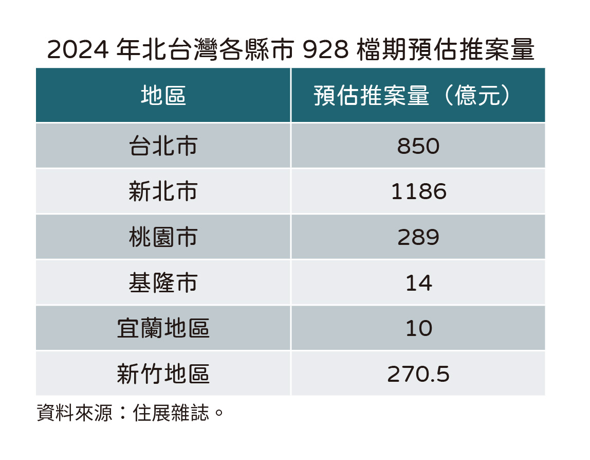圖:2024年北台灣各縣市928檔期預估推案量。資料來源:住展雜誌。