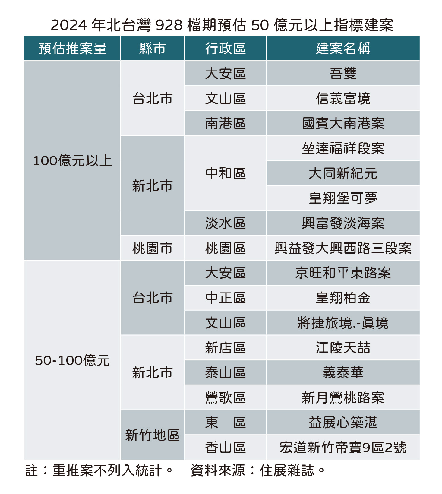 圖:2024年北台灣928檔期指標建案。資料來源:住展雜誌。