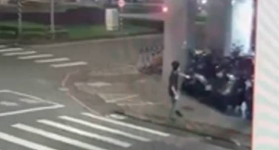 圖說:監視器拍下犯案人投擲雞蛋畫面。(圖片來源:韓文明翻攝)
