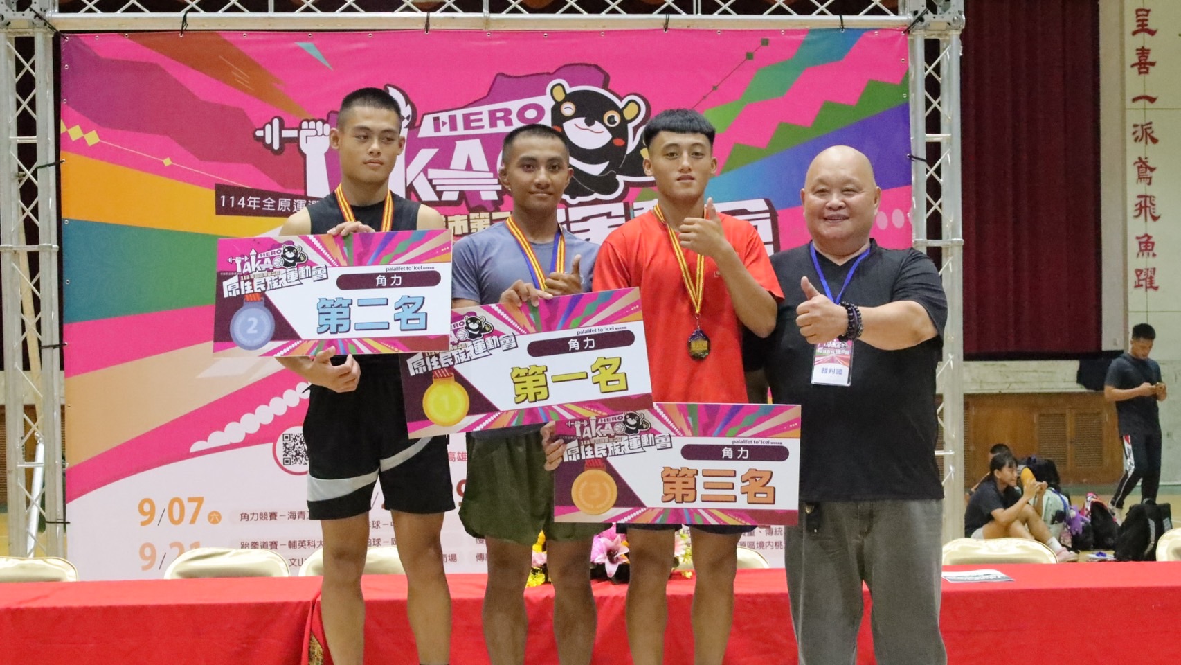 113年高雄市原住民族運動會賽事9月份由角力率先開跑!高雄市體育總會角力委員會7日於高雄市立海青高級工商職業學校舉行代表隊選拔,共有近60名選手報名參賽,高雄市運動發展局長侯尊堯與原民會主委阿布斯等貴賓皆到場參與。