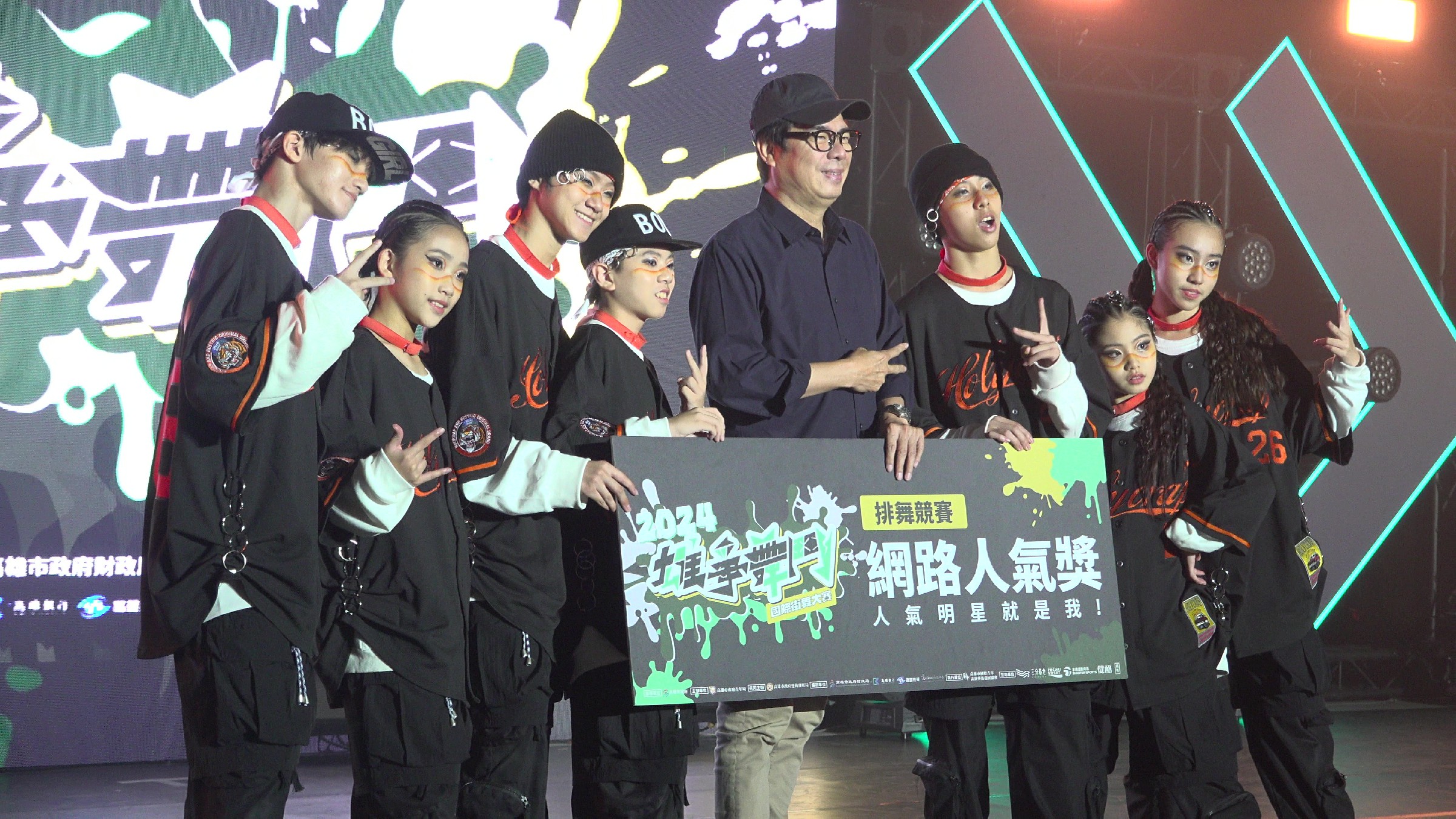 ↑圖說:高雄市長陳其邁頒發排舞賽網路人氣獎給予「靈魂頑童」。(圖片來源:記者 賴君欣 拍攝)