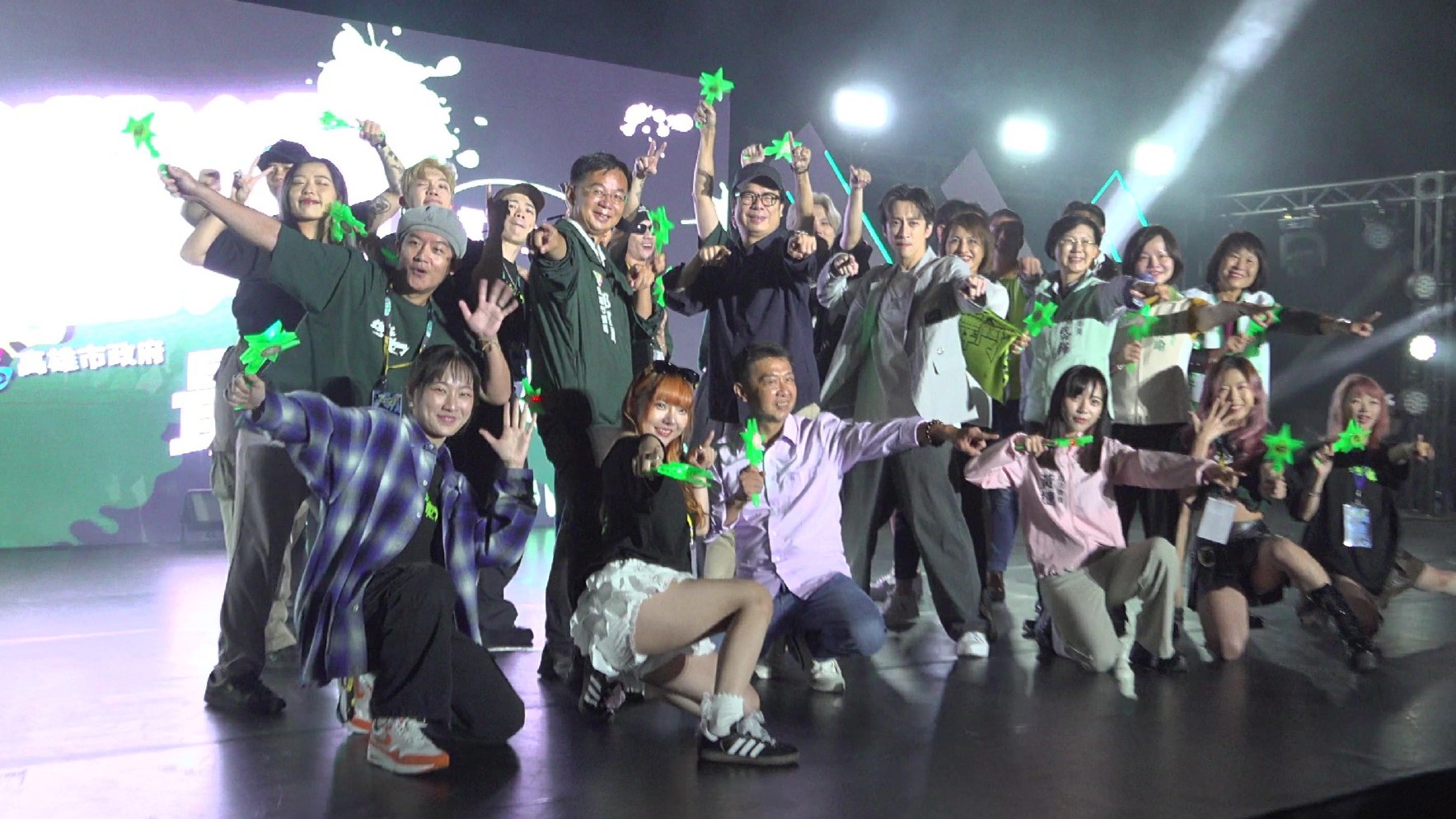 ↑圖說:高雄市長陳其邁與藝人陳漢典同框並帥氣「街舞拍」,掀起活動高潮。(圖片來源:記者 賴君欣 拍攝)