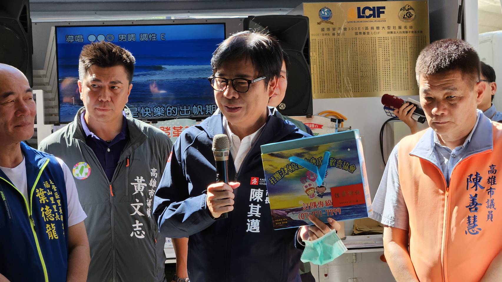活動中,長輩熱情邀請市長同台K歌大比拚,被譽為「靈魂歌手」的陳其邁市長以拿手歌曲「快樂出航」贏得滿堂彩。適逢中秋佳節,市長特別準備文旦及手工蛋捲與機構長輩和辛勤的工作人員分享,並致上節日祝福,期盼所有長輩都能擁有健康愉快的生活。