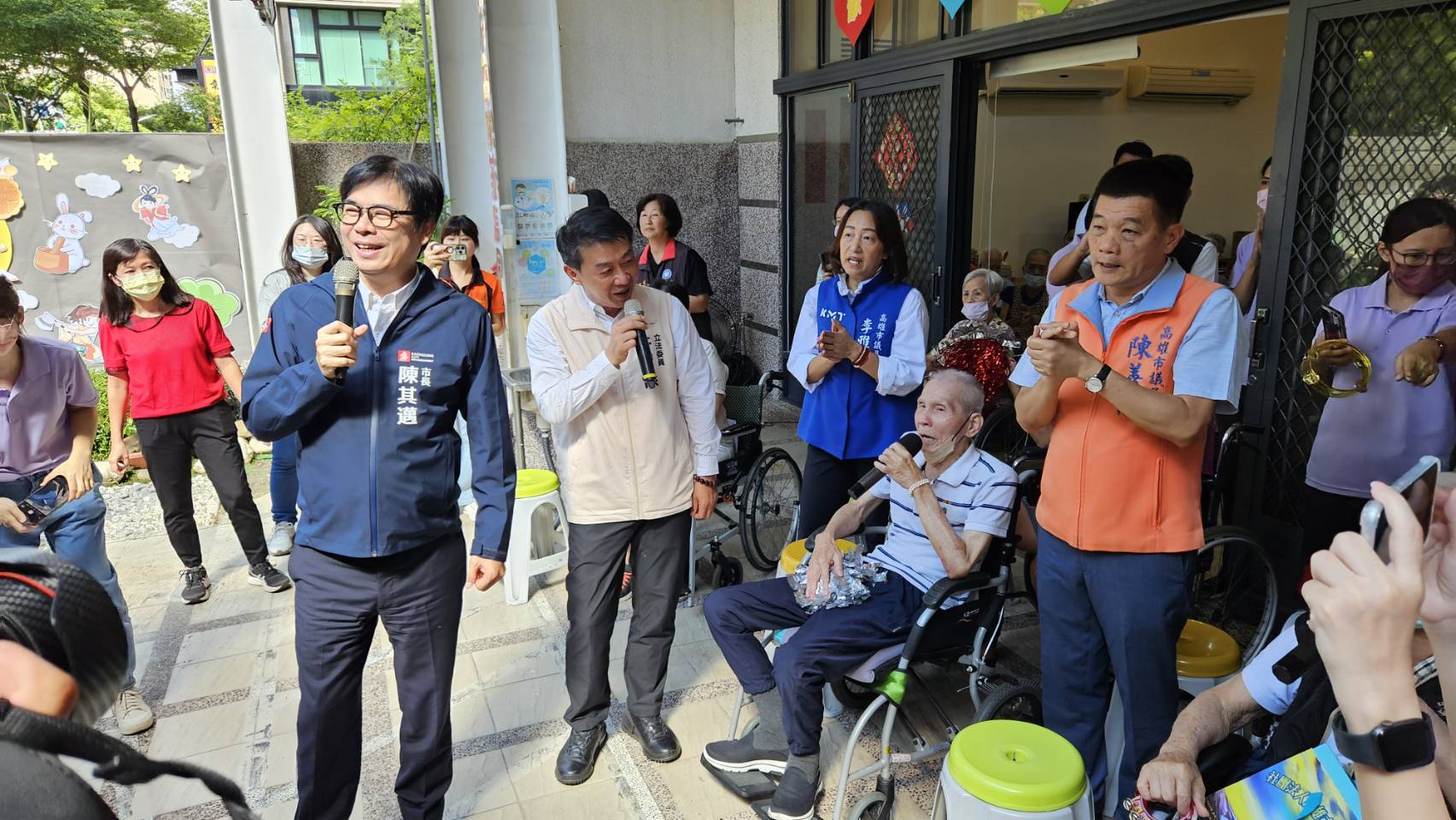 ↑圖說:高雄市長陳其邁獻唱舆長輩們同歡,提前慶祝中秋節。(圖片來源:記者 賴君欣 拍攝)