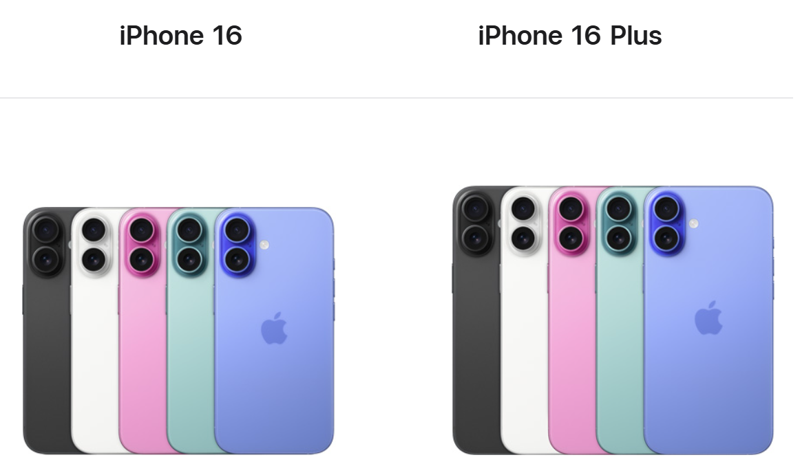 iPhone 16 系列包含iPhone 16、iPhone 16 Plus、iPhone 16 Pro、iPhone 16 Pro Max(如上圖,翻攝蘋果官網),其中,iPhone 16 Pro、iPhone 16 Pro Max擁有史上最窄邊框設計,分別升級為 6.3 和 6.9 吋更大尺寸的 OLED 螢幕。
