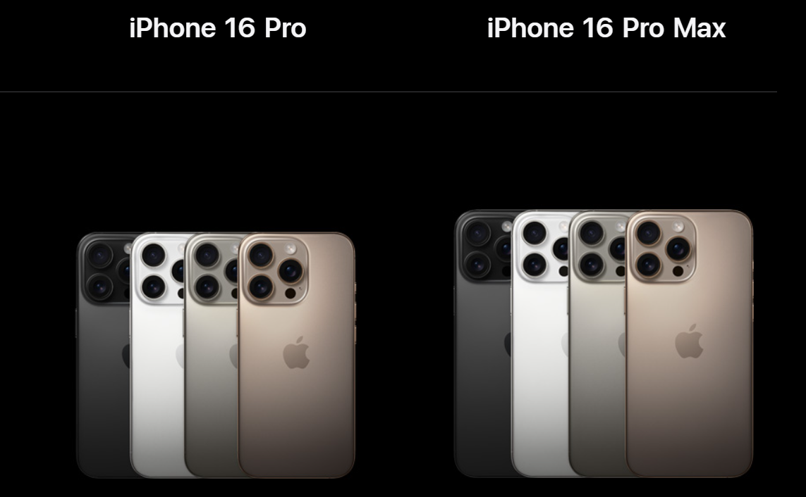 機身顏色方面,iPhone 16和iPhone 16 Plus有黑色、白色、粉色、湖水綠色和湛海藍色,共5色;iPhone 16 Pro和iPhone 16 Pro Max 則有黑色鈦金屬、原色鈦金屬、白色鈦金屬和新色沙漠鈦金屬,共4色。